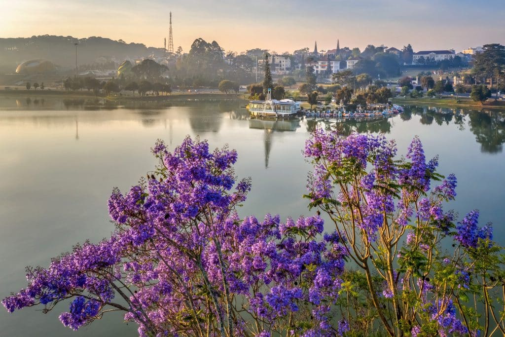 Tháng 3 về, Đà Lạt bước vào một trong những thời khắc đẹp nhất năm khi bầu trời thành phố cao nguyên được tô điểm bởi những chùm phượng tím biếc và sắc trắng tinh khôi của hoa ban.