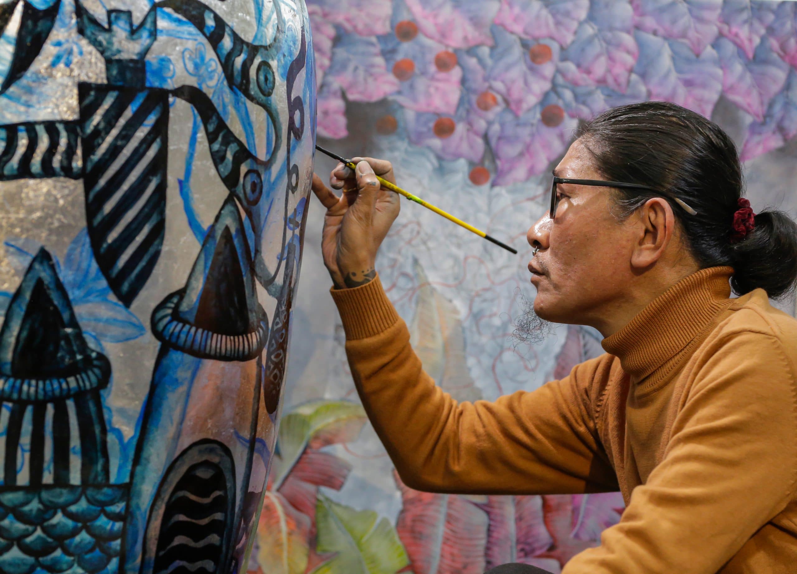 Có lẽ phương cách đó được ứng dụng trong nghệ thuật, mà các bức tranh ngoại cỡ và bình gốm được bày trong triển lãm Ảo Ảnh này là một minh chứng. Trên một tấm toan khổ lớn, Lê Ngọc Thanh vẽ những lớp hình trước, và Lê Đức Hải vẽ tiếp chồng lên đó. Lớp hình của Thanh là các hình thể người, cảnh vật, đồ cổ, kiến trúc, đồ vật hiện đại, xe cộ, dã thú, vũ khí… còn lớp hình của Hải chồng lên trên là các hoa văn mây lửa cách điệu liên miên, đường nét chấn song cổ hay các đường kỷ hà vô tận. Thú vị là hai lớp này không mâu thuẫn, xung khắc hay phủ nhận nhau, người xem vẫn có thể thấy chúng rất độc lập, mà cũng hòa hợp một cách đặc biệt. Như hai cơ thể, hai tính cách, hai định dạng nhưng nhất quán trong tâm trí và cảm xúc.