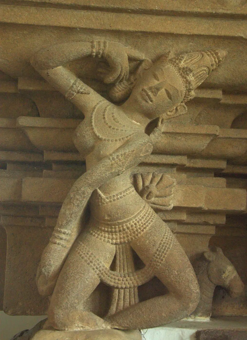 Trong điêu khắc Chămpa, đề tài về người phụ nữ như các nữ thần, vũ nữ đều là những tuyệt tác. Những bức tượng Apsara mang bộ ngực căng đầy sức sống, bắp tay và bắp đùi tròn và thon thả. Đặc biệt các tượng Apsara chạm khắc trên bệ thờ Trà Kiệu, đang trưng bày tại Bảo tàng Điêu khắc Chăm Đà Nẵng. Các bức tượng gần như khỏa thân, bầu vú căng tròn, cổ tay tròn lẳn. Động tác múa uốn lượn, mềm mại nhưng tượng vẫn mang hình khối cân đối và chặt chẽ. Tại khu đền tháp Chàm Mỹ Sơn, Chiên Đàn (Quảng Nam), Dương Long (Bình Định), Bảo tàng Điêu khắc Chăm Đà Nẵng còn lưu giữ nhiều ngẫu tượng Linga – Yoni. Quanh bệ Yoni lại còn nổi lên những núm vú căng tròn mịn màng. Những bức tượng đồng Bồ Tát Tara phát hiện ở Phật viện Đồng Dương (Quảng Nam), đang được lưu giữ tại Bảo tàng Đà Nẵng, tượng Nữ thần Devi, phát hiện ở làng Hương Quế (Quảng Nam), đang được lưu giữ tại Bảo tàng Lịch sử TP. Hồ Chí Minh hay các bức tượng đá miêu tả chân dung hoàng hậu Chămpa đều để ngực trần căng sức sống nhưng vẫn giữ vẻ thánh thiện.