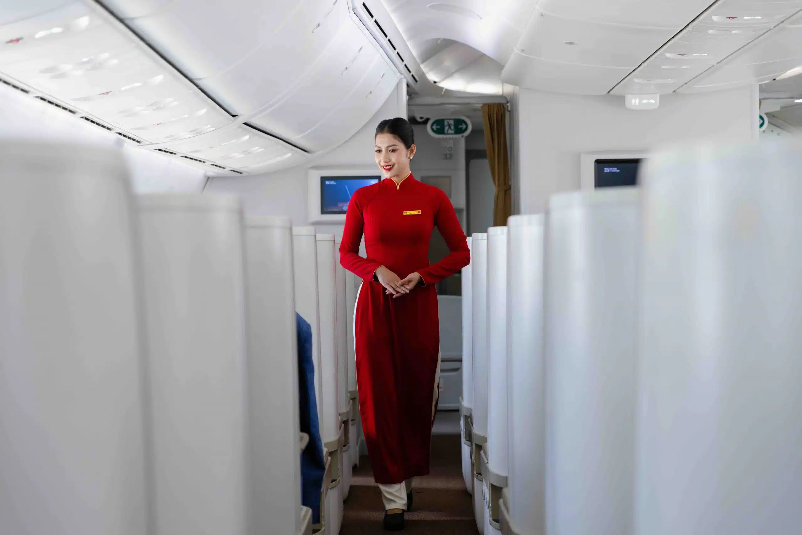 Năm 2000, chiếc áo dài đỏ nhung nổi bật cùng đường viền màu vàng trên cổ áo của hãng mang đến ấn tượng mạnh với hành khách trong nước và quốc tế. Năm 2010, Vietnam Airlines tự hào khi mẫu trang phục áo dài đỏ lọt Top 10 trang phục hàng không đẹp nhất thế giới.