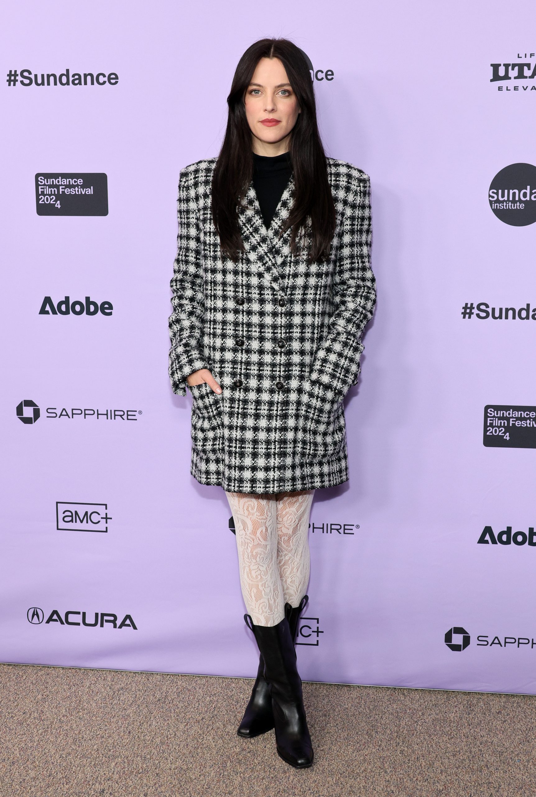 Tại buổi ra mắt phim “Sasquatch Sunset”, nữ diễn viên Riley Keough – nữ chính của bộ phim – đã xuất hiện trong một thiết kế thanh lịch trứ danh của CHANEL. Chiếc áo khoác vải tweed đen kết hợp với quần tất trắng và bốt cao cổ cũng của nhà mốt lớn này đã mang lại cho Riley Keough một diện mạo giản dị, thanh lịch nhưng cũng không kém phần ấm áp.
