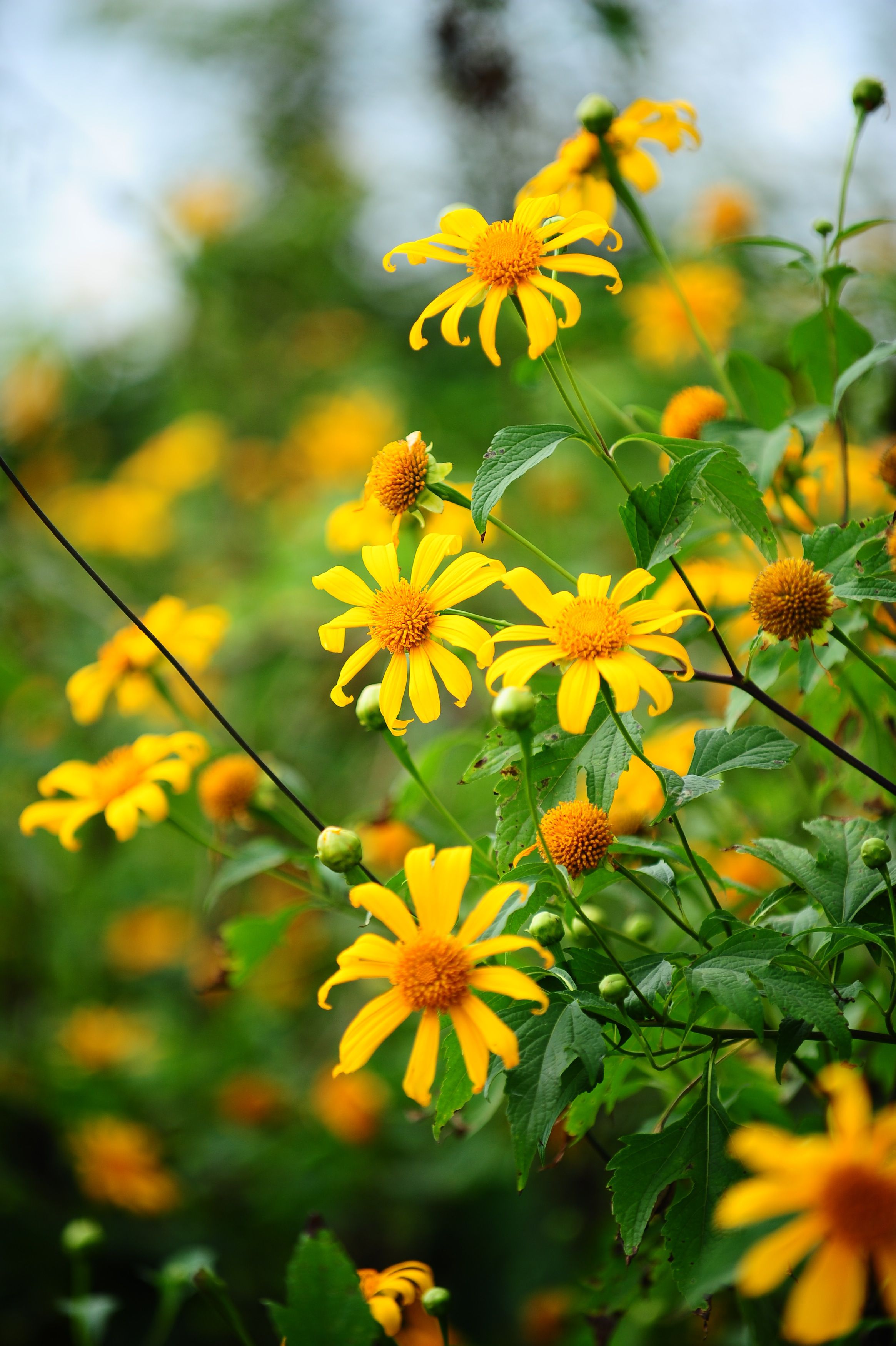 Bên cạnh những thắng cảnh trữ tình, Đà Lạt còn là thế giới của các loài hoa đua nhau khoe sắc, tỏa hương quanh năm. Lễ hội hoa Đà Lạt hàng năm là một trong những lễ hội thu hút rất đông du khách trong và ngoài nước. Vào mùa lễ hội, Đà Lạt được trang hoàng đặc biệt hơn bao giờ hết với các sắc màu hoa đa dạng và rực rỡ của thành phố cao nguyên. Quanh hồ Xuân Hương, khu vực thác Prenn, đường hoa Lê Đại Hành… được trang hoàng lộng lẫy với hàng trăm tiểu cảnh bằng hoa. Thật tuyệt nếu đến Đà Lạt đúng vào những ngày lễ hội hoa để được xem trình diễn carnaval thời trang hoa, xem các cuộc thi cắm hoa nghệ thuật và rất nhiều hoạt động thú vị khác nữa để thấy một Đà Lạt thật thơ mộng mà cũng thật ấn tượng. Kể sao hết tên các loài hoa trong ngôi nhà hoa Đà Lạt. Hoa lan, hoa hồng, hoa cúc, hoa lys… mỗi loại hoa lại có nhiều sắc màu khác nhau. Nhưng nhắc đến hoa Đà Lạt, có lẽ ai cũng sẽ nhớ đến sắc màu vàng óng của mimosa, hay sắc màu vàng rực của dã quỳ, hai loài hoa tiêu biểu của thành phố này. Nếu lễ hội hoa Đà Lạt cho du khách cảm nhận một bức tranh lung linh sắc màu của thành phố hoa thì mùa hoa dã quỳ cho du khách một cảm nhận về sức sống núi rừng mãnh liệt của vùng cao nguyên này. Quyến rũ và tinh khiết, nổi bật dưới nắng mặt trời vùng núi đồi Lâm Đồng, hoa dã quỳ là một loài hoa dại, mọc tự nhiên rất nhiều ở bên đường, dọc sườn núi hay quanh đồi chè. Đến cuối tháng 10 là không gian Đà Lạt khoác lên mình chiếc áo vàng rực rỡ của hoa dã quỳ. Khi hoa dã quỳ nở rộ cũng là lúc kết thúc mùa mưa, đánh dấu một mùa du lịch lãng mạn của Đà Lạt. Thời điểm này cũng là lúc du khách từ khắp nơi lại đổ về Đà Lạt để đắm mình trong không gian nên thơ nhuốm sắc vàng hoang dại của dã quỳ. Hoa dã quỳ tuy có cánh mảnh hơn và kích thước nhỏ hơn hoa hướng dương, nhưng lại mọc thành từng cụm, nên khi những bông dã quỳ xen kẽ nhau đua nở sẽ kết một tấm thảm vàng rực rỡ. Như màu vàng của nắng, hoa dã quỳ thắp thêm những tia nắng sưởi ấm cho vùng cao nguyên se lạnh và làm lạc bước chân du khách.
