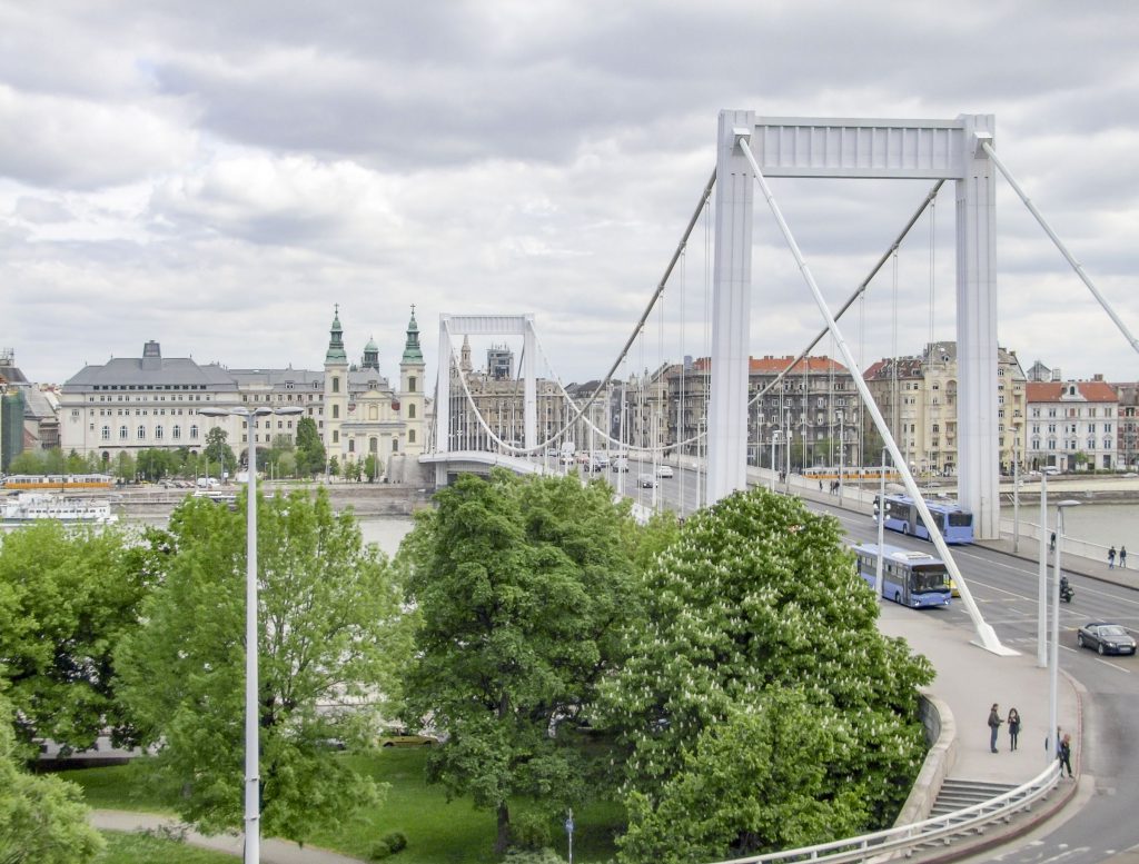 Giữa tổng thể kiến trúc đồ sộ, cổ kính hai bên bờ sông Danube, cầu Elisabeth màu trắng lại trở nên nổi bật bởi sự mảnh mai, thanh thoát. Điều này có vẻ liên quan đến tên của cây cầu được đặt theo tên của một vị nữ hoàng thuộc Đế quốc Áo – Hung. Nữ hoàng Elisabeth xinh đẹp đặc biệt được dân chúng yêu mến, ngày nay tượng của bà cũng được đặt trong một công viên gần với cầu Elisabeth. Nguyên thủy, cầu Elisabeth là một cây cầu treo bằng sắt khá đồ sộ. Cũng chính vì sức nặng của nó mà sau sự tàn phá của Thế chiến thứ Hai, dù hàng loạt cầu bắc qua sông Danube ở thủ đô Budapest bị tàn phá đã được phục dựng, cầu Elisabeth không thể cứu vãn được mà chỉ bằng cách xây mới. Từ năm 1960 đến 1964, sau gần hai thập kỷ bị phá hủy, cầu Elisabeth được xây lại hoàn toàn mang những nét kiến trúc đơn giản, hiện đại nhưng không kém phần cuốn hút.
