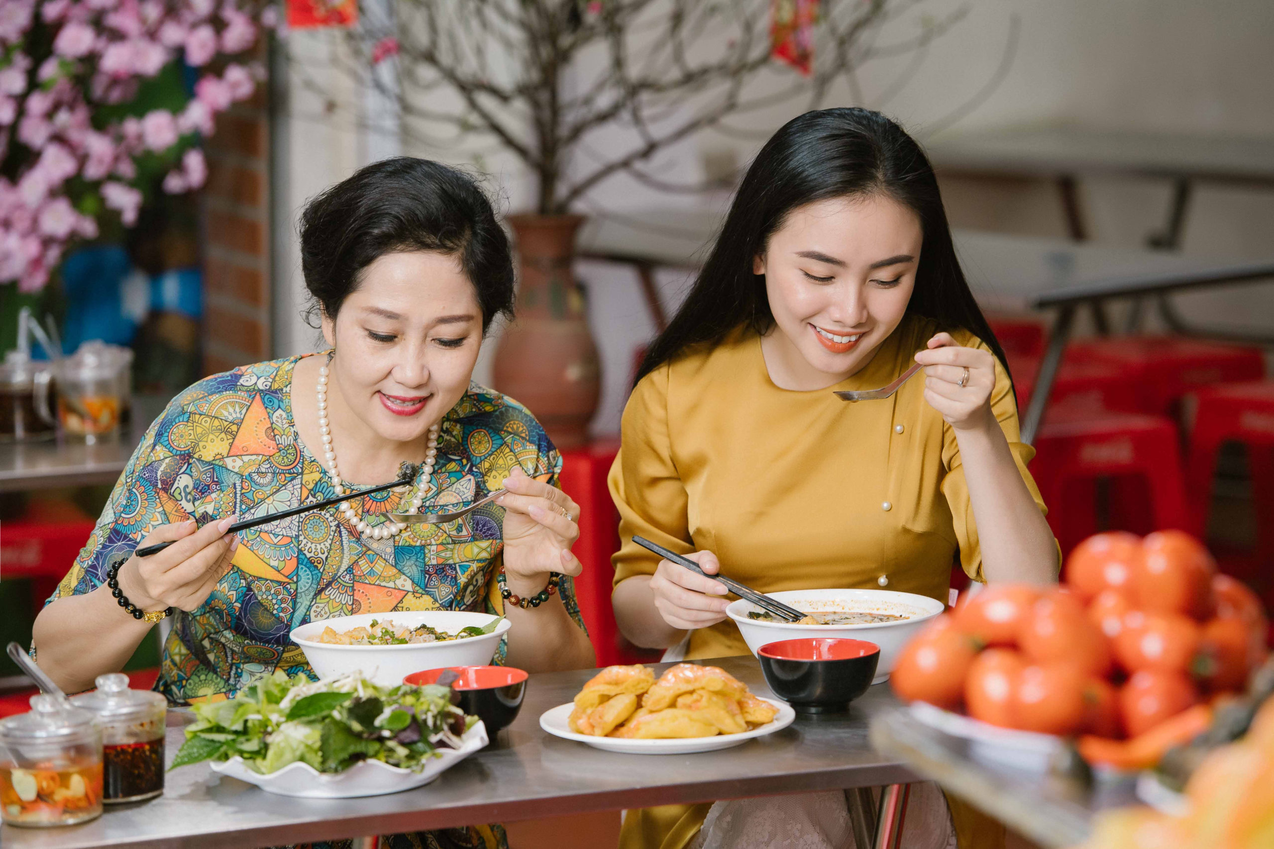 Về phía khách hàng, đi mua hàng năm mới cũng hứa hẹn một niềm vui. Những ngày này, người ta tiêu xài thoải mái hơn sau một năm đã tích lũy một món tiền tiêu Tết. Ngày xuân, sau khi đã chán các món cỗ cổ truyền, mọi người thích ra phố, vào các quán mới mở hàng bởi lẽ những người chủ hàng cũng cố gắng dành sự quan tâm chăm chút đến món ăn của bản hiệu. Cả đôi bên đều ý thức mình đang tạo ra một cuộc giao lưu ẩm thực mang tính trang trọng hơn mọi ngày trong năm. Đặc biệt lúc này, những quán bún ốc, bún cá rô đồng và phở, những thứ mà người thích ăn quà trong năm đã phải nhịn hơn một tuần từ trước Tết, cũng là những món không có trên mâm cỗ Tết, thật đắt hàng.