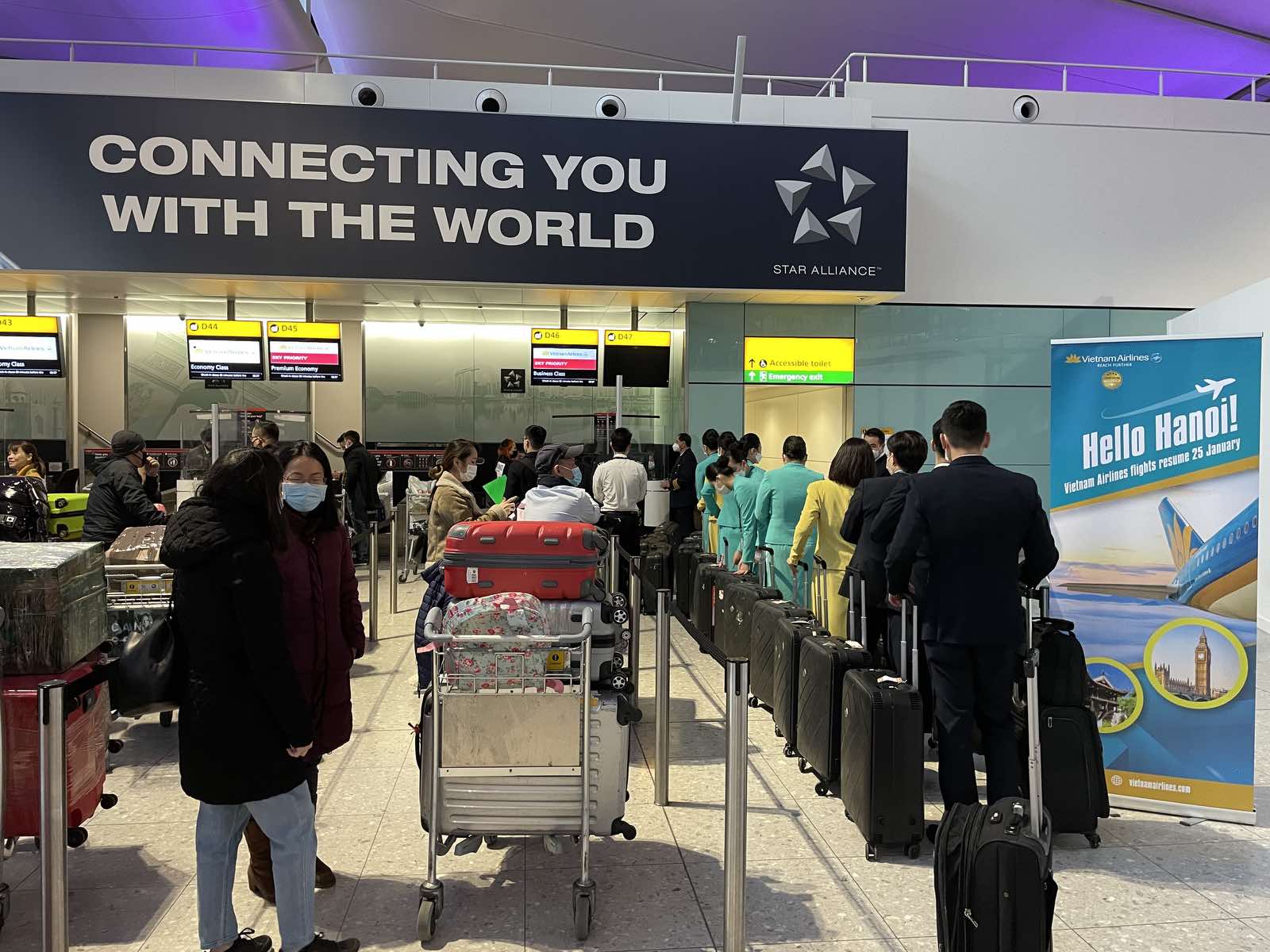 Vietnam Airlines vừa thực hiện hai chuyến bay đầu tiên chính thức nối lại các đường bay thường lệ giữa châu Âu và Việt Nam sau gần 2 năm gián đoạn vì ảnh hưởng của đại dịch Covid-19. Theo đó, các chuyến bay mang số hiệu VN36 hành trình Frankfurt (Đức) – Hà Nội chở 190 hành khách và VN18 hành trình London – Paris – Hà Nội chở gần 300 hành khách lần lượt hạ cánh an toàn tại sân bay quốc tế Nội Bài lúc 09h30 và 09h55 sáng 26/1/2022.