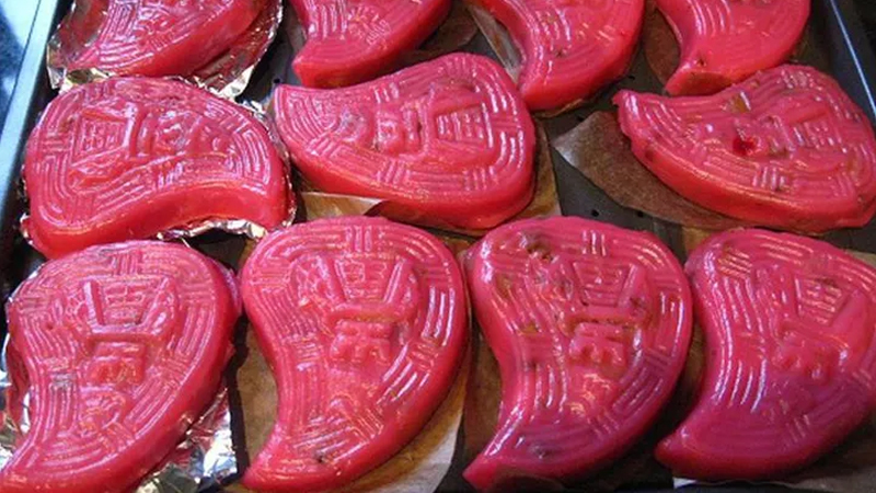Không chỉ để cúng lễ, bánh hồng đào còn được làm vào dịp mừng thọ người lớn tuổi. Vì vậy mà bánh được đúc khuôn theo hình trái đào tiên cùng màu hồng bắt mắt. Để thay lời chúc phúc thọ an khang, trên mặt bánh còn in nổi chữ “Thọ” bằng tiếng Hoa.