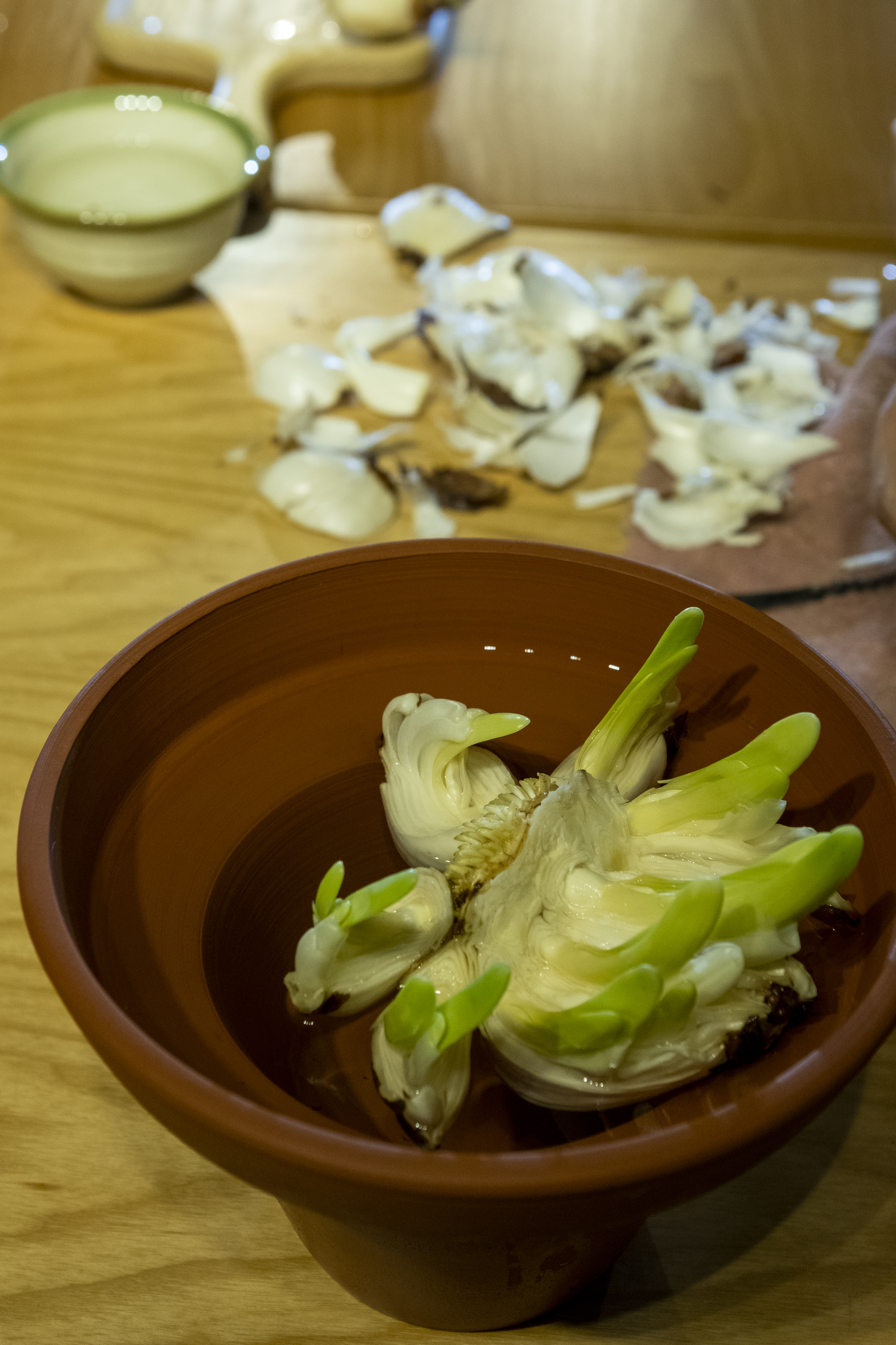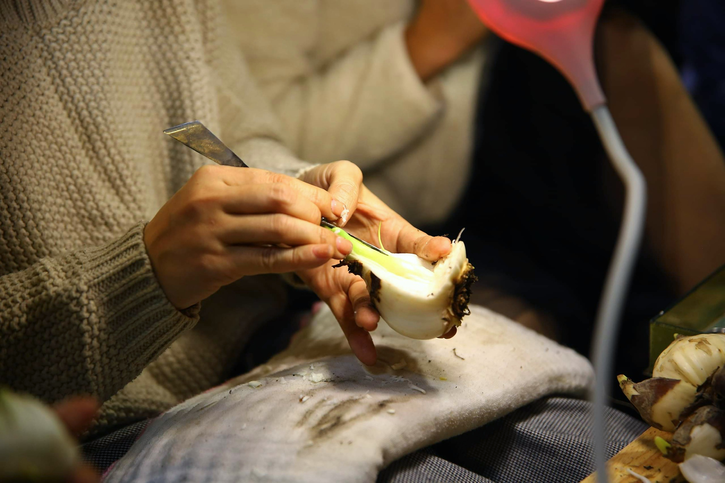 Nhưng nói về cách chơi hoa Tết “thật là Tết”, thì phải nói đến thú chơi hoa thủy tiên của người Hà thành. Nhà văn Vũ Bằng có tùy bút rất hay, “Ăn Tết Thủy tiên” nói về cái thú chơi rất mực tao nhã này. Người chơi hoa thủy tiên kỳ công lắm, bởi không phải chỉ ra chợ mua bình hoa về ngắm là xong, mà phải mất công từ lúc chọn củ hoa, tỉa gọt, “tắm củ” hàng ngày, tỉa lá, uốn dáng, rồi canh hoa nở đúng thì. Gọt tỉa thực chất là việc can thiệp vào các mầm hoa và lá trong củ thủy tiên, định dáng, tạo hình và thậm chí là căn chỉnh được thời gian nở hoa. Để làm điều này, người chơi phải hết sức kiên nhẫn và tập trung để tách từng lớp vỏ ngoài củ, mà không để phạm vào bao hoa. Rồi tùy vào ý định ban đầu, củ thủy tiên sau khi gọt tỉa sẽ được chăm sóc kỹ hàng ngày để uốn cho cành hoa, dáng lá dần dần thành hình. Từ lúc bắt đầu gọt củ thủy tiên, đến lúc hoa nở chỉ từ 20 đến 25 ngày, nhưng để có bát hoa nở đẹp viên mãn, là cả một quá trình người yêu hoa phải chăm sóc, nâng niu, thậm chí là “ăn ngủ cùng hoa”. Phải chăng vì vậy mà nói chơi hoa thủy tiên giúp người ta “tu tâm dưỡng tính”. Ngày nay, ngoài những bát hoa truyền thống với các quy chuẩn nghiêm khắc về hình dáng, tỉ lệ và màu sắc, thì có rất nhiều bát hoa thủy tiên đẹp mang phong cách hiện đại, được người chơi giới thiệu trong các hội nhóm.