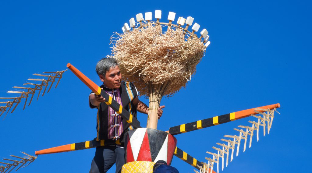 Cột lễ được làm từ những thân cây gỗ mềm. Các bộ phận, chi tiết trên cây nêu hay cột lễ có nhiều mô típ trang trí, mang ý nghĩa, biểu tượng khác nhau, như ước vọng cuộc sống hạnh phúc, ấm no, sung túc, mùa màng bội thu, sản vật được sinh sôi này nở… Người được chọn làm cột lễ là người khỏe mạnh, trong sạch, gia đình yên ấm thì cột lễ mới thiêng và nhất là phải có khả năng điêu khắc và vẽ tranh.