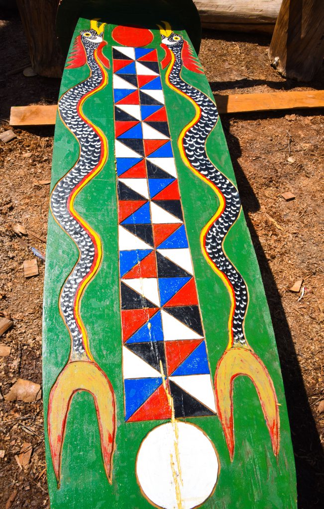 Chuỗi cườm tròn trên cây cột lễ miêu tả hạt cườm crôl – một loại cườm to, đẹp, nhiều màu sắc và đắt giá (bằng giá một con trâu to trở lên) – là loại trang sức mà người đàn ông Cơ Tu ưa thích. A pác có thiết diện hình hộp chữ nhật, mặt lớn nằm phía chính diện của cột lễ, là nơi tập trung nhiều hoa văn, hình vẽ như mặt trăng, mặt trời, con rồng a dóc, lá cây a tút, cây a dương (cây mây)… Tại đây tập trung nhiều hình vẽ biểu tượng cho vũ trụ, đất trời như ngôi sao, mặt trời, mặt trăng…, đặc biệt là hình con rồng Bha dưa a dóc đầu hướng về trên, thân mình và đuôi kéo dài xuống dưới. Theo đồng bào thì con rồng này do thần Nước sinh ra, nuôi dưỡng và sai khiến, trừng trị những kẻ ăn ở thất đức, lấy hình ảnh của nó để răn đe, giáo dục con cháu.