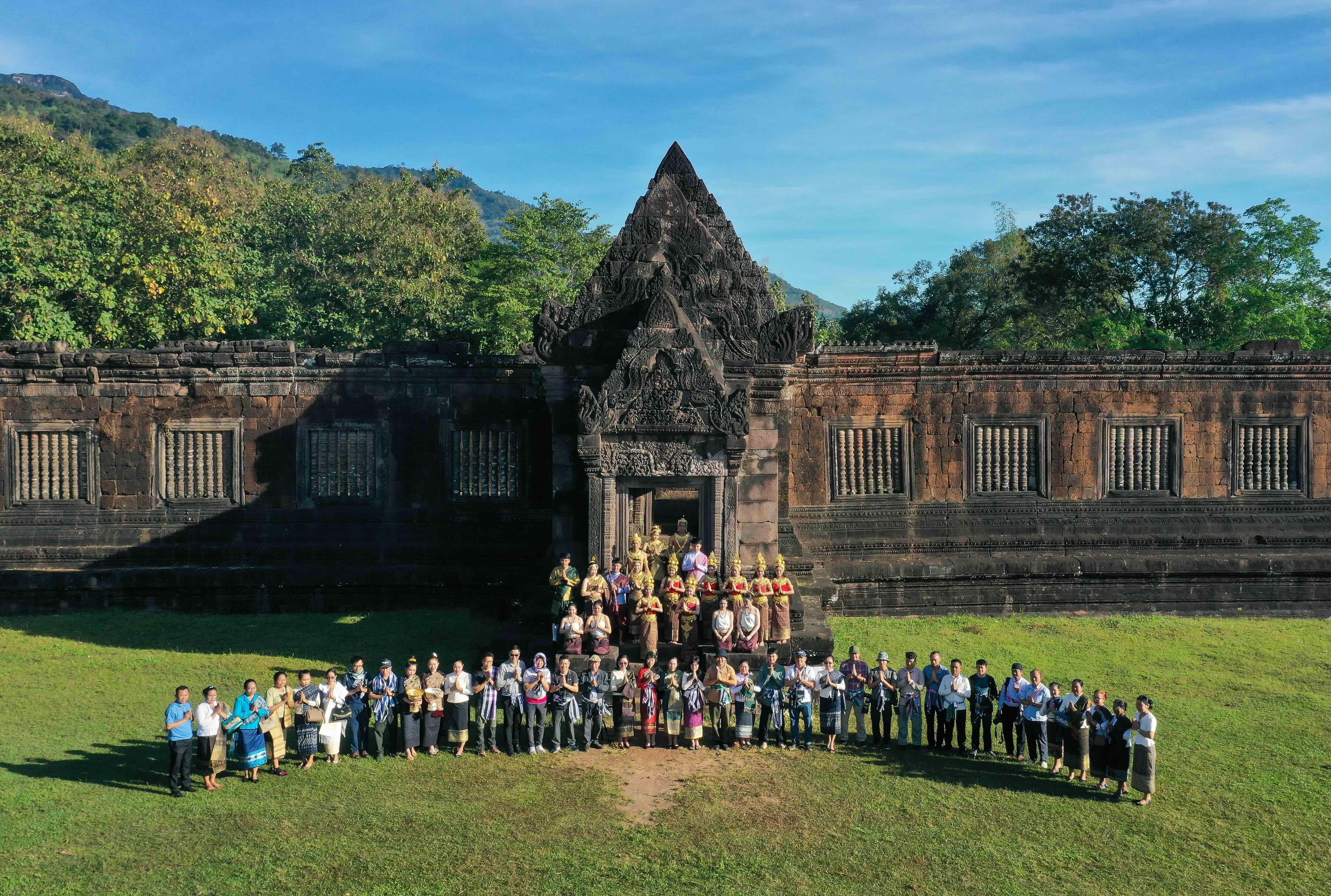 Ấn tượng nhất trong hành trình là những khoảnh khắc bình yên tại ngôi đền Wat Phou, khi ánh sáng đầu tiên khẽ chạm vào những phiến đá cổ, bóng các nhà sư trong lễ khất thực Tak Bat in dài trong sương sớm. Những cánh tay vũ công uyển chuyển trong điệu múa truyền thống như đưa người xem ngược về trang sử của nền văn hóa huy hoàng xa xưa. Ngôi đền trên núi này được xây dựng từ thế kỷ thứ 5, từng là trung tâm tôn giáo của vương quốc Chenla, tiền thân của đế chế Khmer.