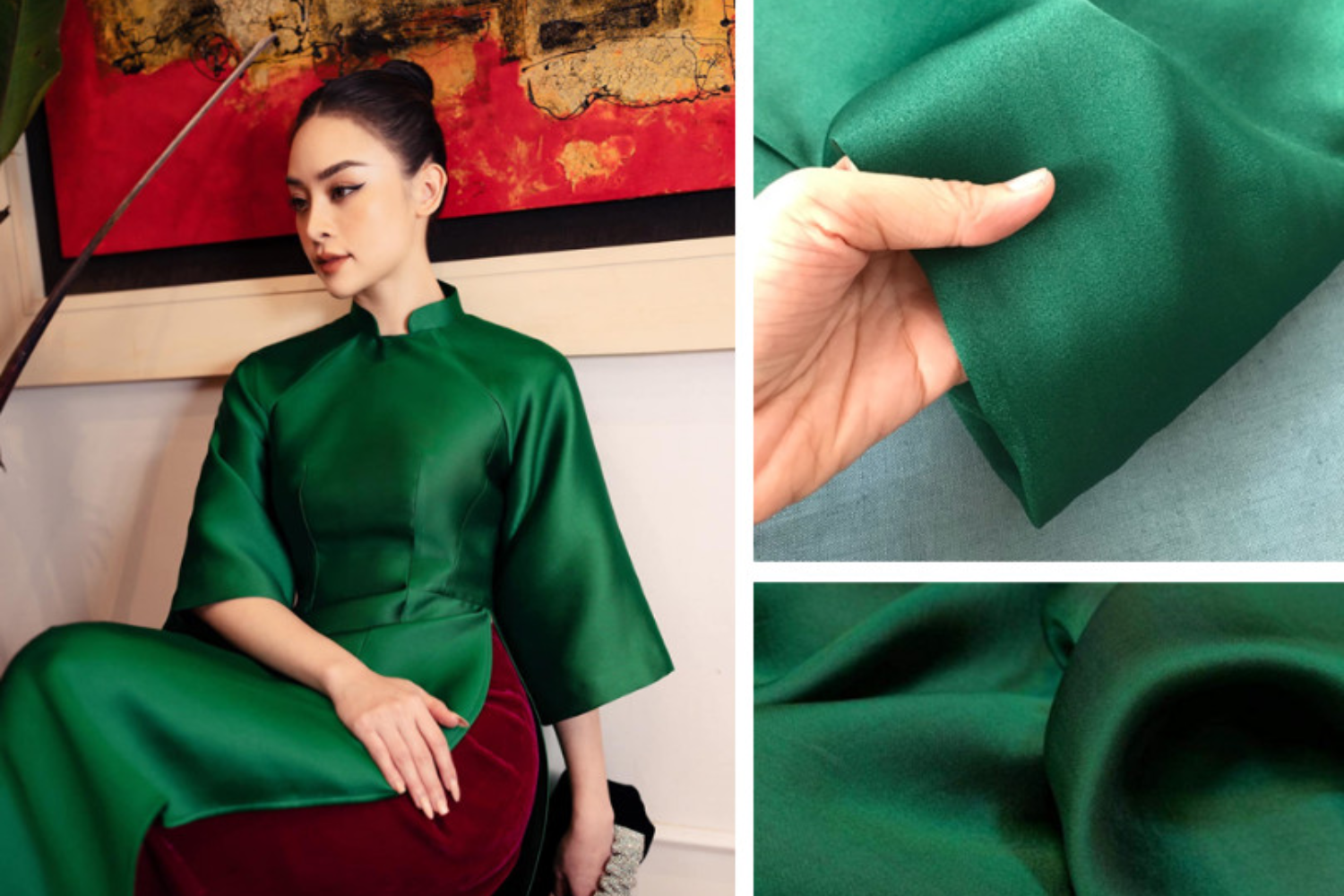 Taffeta là chất liệu nổi bật nhất trong các thiết kế áo dài cách tân cho Tết 2026. Ưu điểm lớn nhất của taffeta nằm ở khả năng đứng phom. Vải có độ cứng vừa phải, không ôm sát cơ thể như lụa, cũng không rũ mềm như voan, nhờ đó giúp định hình dáng áo một cách rõ ràng.