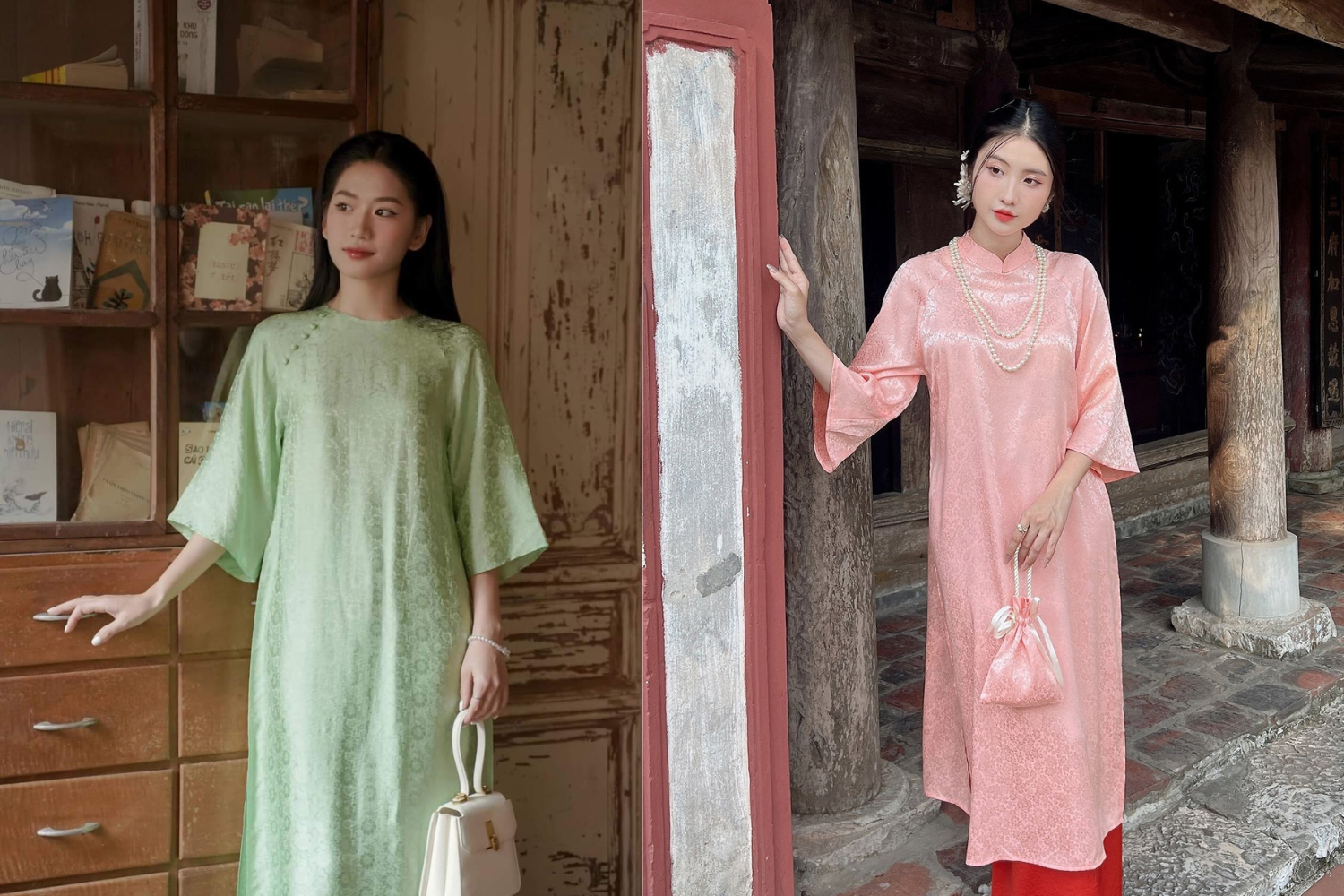 Bảng màu của gấm cũng được làm mới với các tông trầm và trung tính hơn như xanh cổ vịt, hồng ruốc, tím than hay vàng đồng. Những gam màu này giúp áo dài gấm trở nên dễ mặc, phù hợp với nhiều độ tuổi và không gian khác nhau.