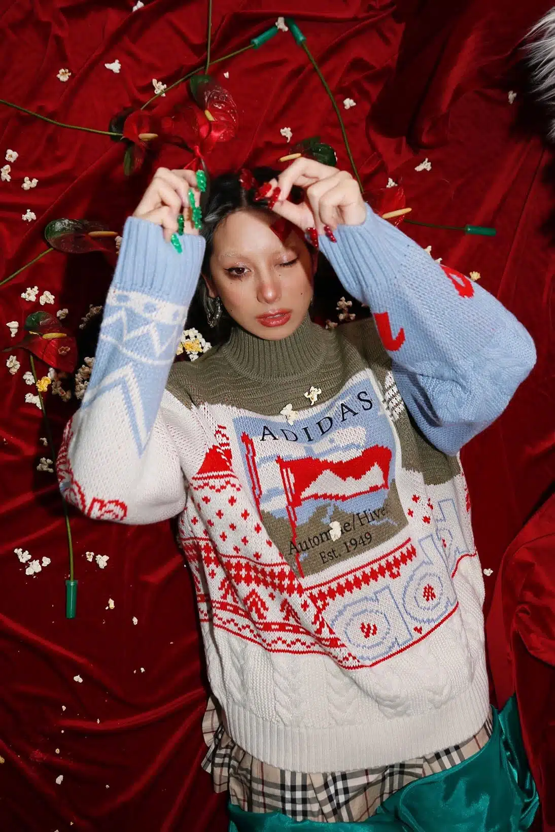 Nếu trang phục lễ hội được biết đến với vẻ đẹp lộng lẫy, kiêu sa, thì trang phục Giáng sinh khoác lên mình cả những sắc thái khác. Cứ mỗi độ tháng 12 hàng năm, khi những chiếc xe tuần lộc hay ông già Noel được trang hoàng rộn ràng khắp các con phố thì bên trong gian nhà, các gia đình lại quây quần bên nhau, khoác lên mình những y phục thoải mái nhất. “Ugly sweater” là một món đồ như thế, một chiếc áo len mang lại vẻ ấm cúng với hình thù ngộ nghĩnh, thường có gam màu xanh- đỏ kinh điển. Có nhiều kiến giải xoay quanh màu sắc này, như theo Ki-tô giáo, sắc đỏ được xem như màu máu của Chúa Jesus lúc ngài bị đóng đinh trên thập tự giá, còn xanh lá cây tượng trưng cho loài cây thường xanh với sức sống mạnh mẽ trong mùa đông buốt giá, ý chỉ sự tái sinh và đời sống vĩnh cửu của Chúa Jesus.