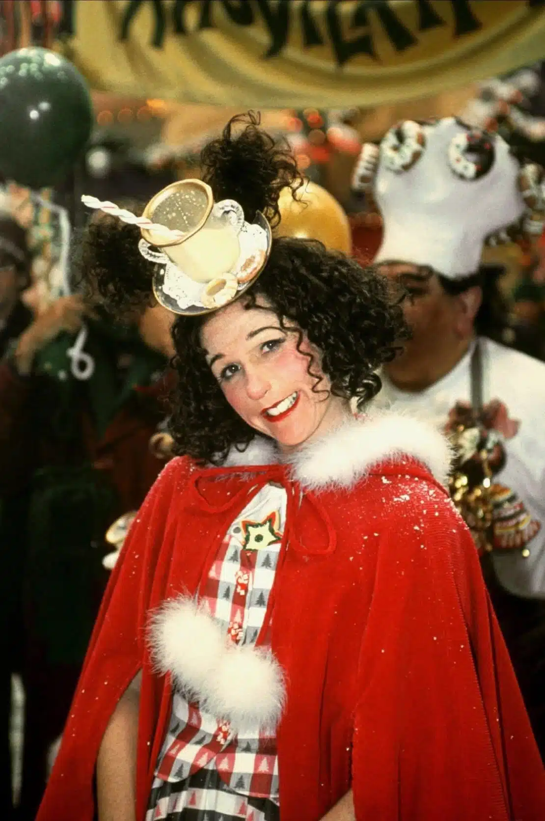 Phối cùng với “Ugly sweater” còn có nhiều món đồ thời trang thú vị. Nếu bạn từng thắc mắc về một kiểu nón đội đầu có hình tách trà, đó chính là một sáng kiến từ phim How the Grinch Stole Christmas (2000) – một bộ phim được đề cử Oscar với sức ảnh hưởng lạ lùng lên dòng chảy thời trang Giáng sinh! Trong phim, nhân vật Betty Lou Who lăng xê kiểu váy corset kẻ caro với chiếc mũ trùm đầu hình tách trà – một kiểu phối hợp kỳ quái không tưởng! Không lâu sau khi bộ phim phát hành, Rita Ryack, nhà thiết kế thời trang của bộ phim, đã ghé thăm một cửa hiệu Versace ở Las Vegas (Mỹ) và bắt gặp những con ma-nơ-canh đội chiếc mũ quái dị của mình. “Chi tiết này tạo nên một xu hướng thời trang cao cấp mới” – Rita Ryack vui mừng. Tất cả những điều trên đã khẳng định cho ta một điều, rằng thời trang Giáng sinh luôn mang vẻ rực rỡ và hân hoan theo một cách rất riêng, và dù kỳ lạ, thì nó vẫn có thể sang trọng một cách sáng tạo.