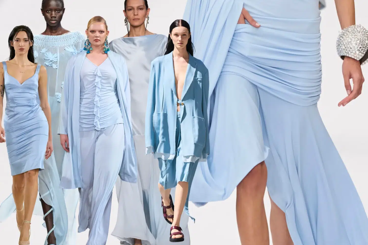Xanh trời là một trong những tông màu yêu thích của mùa xuân hè 2025. Màu sắc này đại diện cho sự tươi mới, tựa như bầu trời trong lành và thoáng đãng, mang lại một cảm giác thư thái, dễ chịu. Đặc biệt, sắc xanh này sẽ rất phù hợp cho những ai yêu thích sự nhẹ nhàng nhưng không kém phần nổi bật.