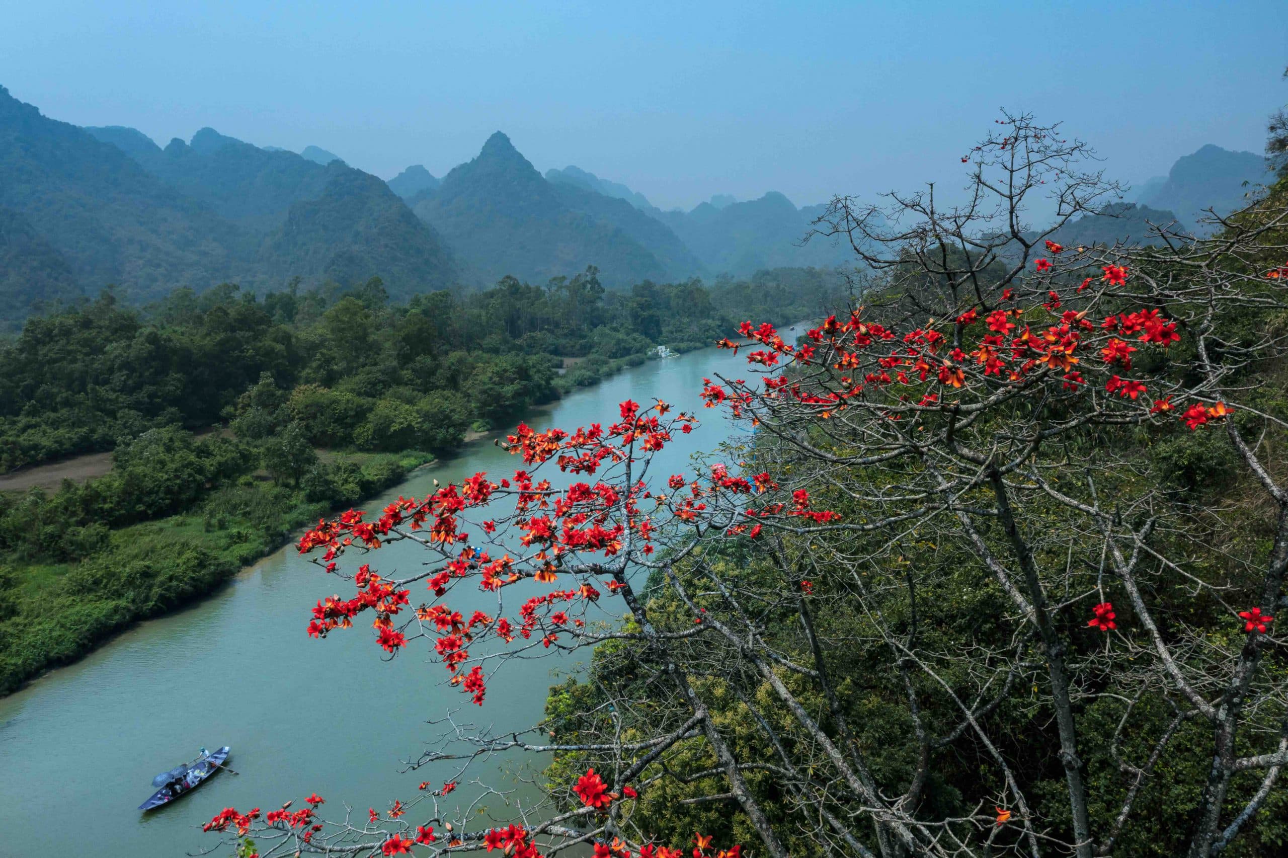 Chùa Hương mùa hoa gạo lãng mạn bởi nhịp điệu của cảnh: nhịp thuyền, nhịp nước, nhịp mây. Bờ suối uốn cong, núi làm nền xa, tiếng người phía trước bỗng nhỏ lại, nhường chỗ cho cảm giác yên lành lan dần trong lòng. Giữa những ngày xuân còn đủ lạnh để sương mỏng vương trên mặt nước, sắc đỏ hoa gạo khiến chùa Hương không chỉ là điểm đến của tín ngưỡng, mà còn là một cuộc hẹn của cảm xúc – nơi người ta đi chậm lại, nhìn kỹ hơn, và mang về một ký ức đỏ thắm, dịu dàng.