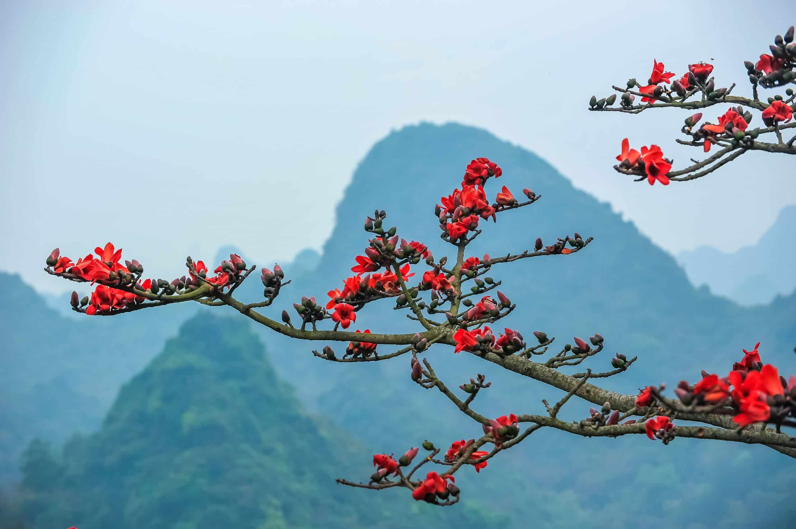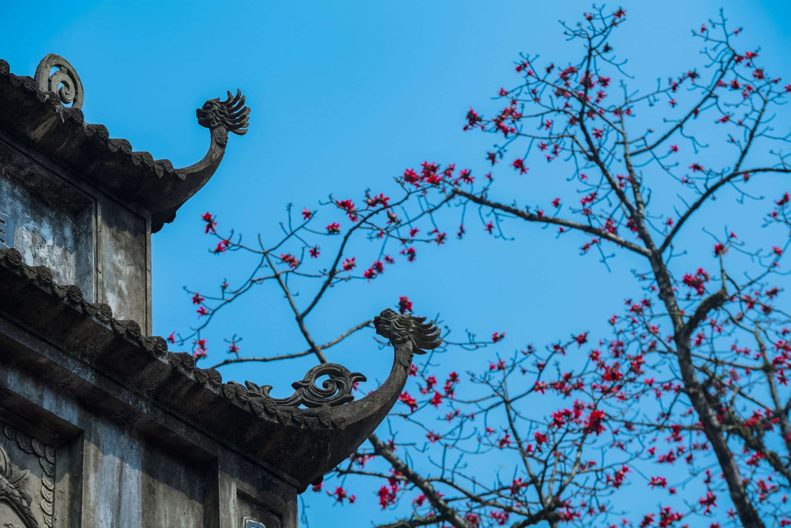 Câu ca dao tưởng như đùa vui ấy lại là tín hiệu rất thật của miền Bắc: khi hoa gạo bừng đỏ, mùa xuân đã chín. Ở chùa Hương, Hà Nội, sắc đỏ ấy không chỉ nằm trên cành cao, mà còn soi xuống suối Yến, len vào sương mây và mặt nước, hòa vào nhịp lễ hội rộn ràng.