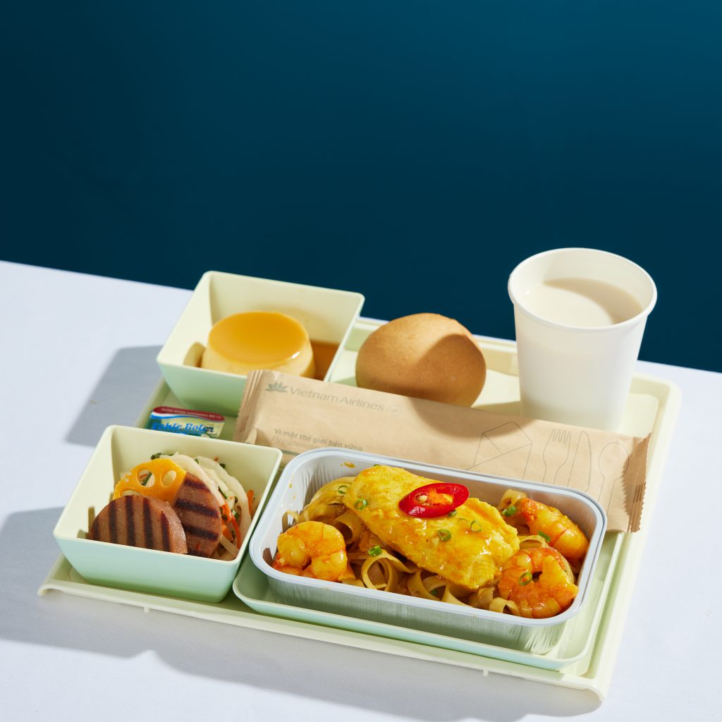 Đối với bữa ăn phục vụ trên không, Vietnam Airlines tận dụng tối đa các nguyên liệu địa phương và thực phẩm theo mùa, đồng thời triển khai quy trình nghiêm ngặt nhằm thu hồi, tái cấp các sản phẩm đồ khô, dụng cụ dùng một lần còn đảm bảo chất lượng, giúp giảm thiểu lượng rác thải không đáng có ra môi trường.