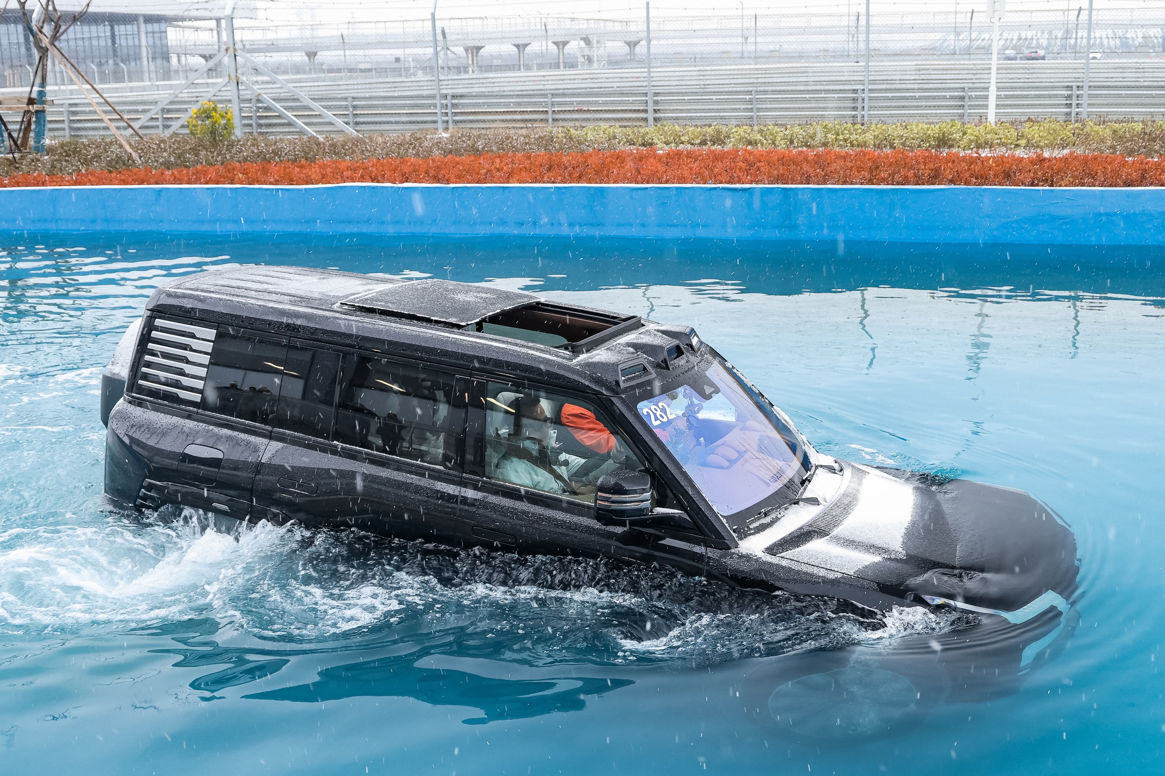 Với 8 phân khu trải nghiệm mô tả tình huống cực đoan nhất ngoài đời thực, các mẫu xe năng lượng mới, gồm xe thuần điện lẫn xe hybrid của BYD, đã lần lượt biểu diễn khả năng leo dốc cát, bơi trong bể nước sâu, hay tăng tốc, xử lý khi mất lái ở đường trơn trượt. Mở màn là tiết mục khiêu vũ của xe điện trên sân băng ngoài trời: lượn vòng số 8, chạy song song, như vờn như múa trên mặt sân trơn trượt mà không hề bị va chạm hay mất kiểm soát. Tiếp đến là pha leo dốc cát trong nhà dựng đứng gần 30 độ của mẫu SUV YangWang U8, rồi lại chính U8 lội nước trong bể sâu, có đoạn đến 1,8m. Tận mắt nhìn thấy chiếc xe tiến vào và ngập trong nước, lùi, rồi xoay trở lại, khi nghe người hướng dẫn nói xe có thể nổi trong nước đến 30 phút, tôi bỗng có cảm giác đang chứng kiến một thứ vừa mang tính công nghệ, vừa giống một trò ảo thuật kỳ thú.