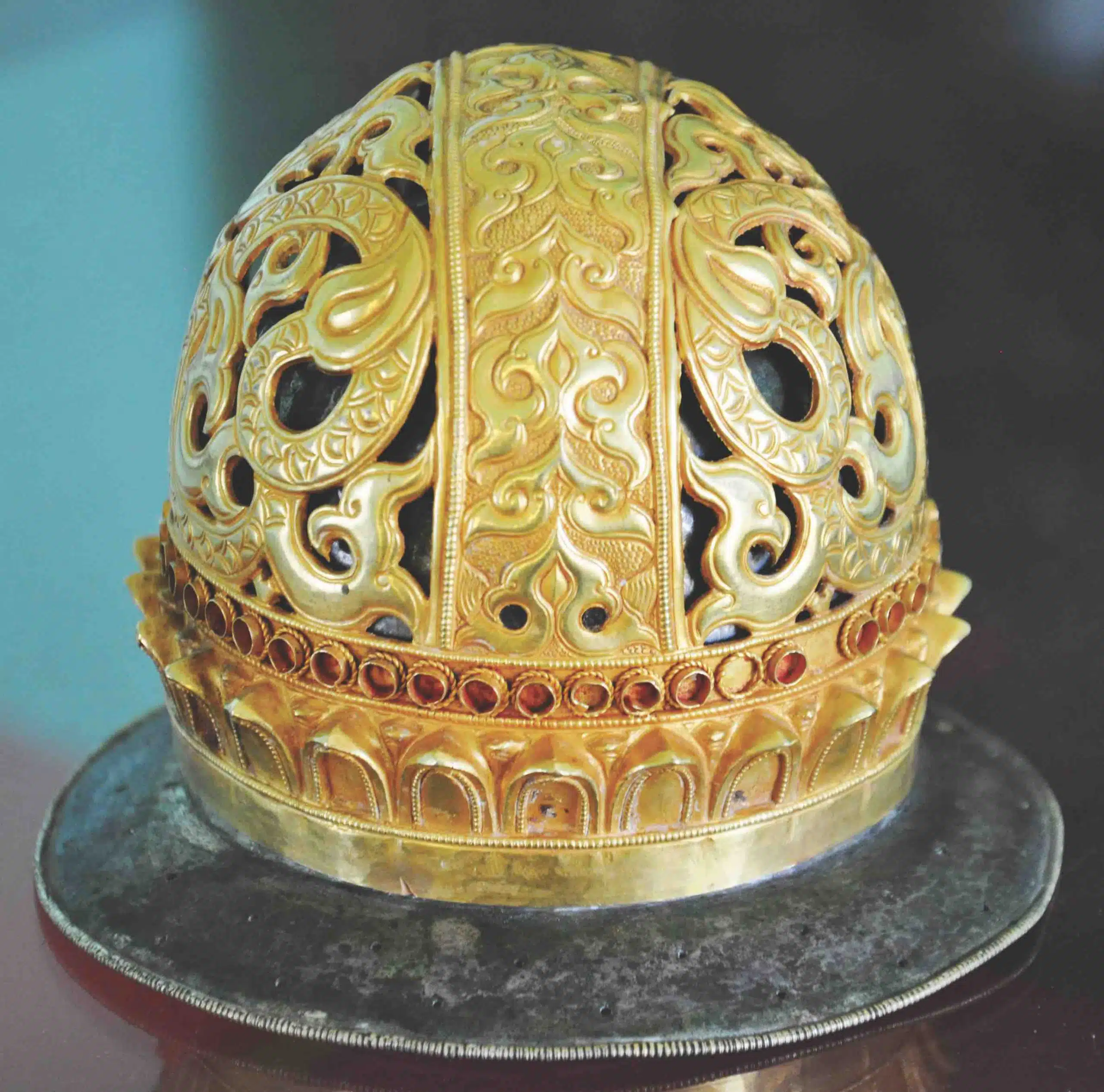 Đầu thế kỷ 20, các nhà khảo cổ học người Pháp như Henry Parmentier, Charles Carpeaux phát hiện nhiều hiện vật bằng vàng ở các di tích, di chỉ văn hóa Champa. Charles Carpeaux kể lại trong một bức thư ghi ngày 21/08/1903, sau cơn mưa lộ ra một cái bình gốm đất nung sau tháp C7, khu di tích Mỹ Sơn. Trong bình có vương miện, vòng cổ, vòng tay, vòng mắt cá chân bằng vàng chạm khắc tinh xảo gắn đá quý thô. Đây là những món trang sức cho tượng thần Siva tại Mỹ Sơn. Cũng vào lúc đó, các nhà khảo cổ phát hiện tượng thần Siva tại tháp Mỹ Sơn C7, kế bên C1, có niên đại khoảng thế kỷ 8-9, bằng sa thạch. Bức tượng này được trang điểm một bộ trang sức bằng vàng. Tại tháp Ponagar (Khánh Hòa), tháng 2/1906, trong khi khai quật khảo cổ qui mô ở tháp, Henry Parmentier đã 2 lần tìm thấy kho báu của người Champa, trong đó nhiều hiện vật bằng vàng như nhẫn, vòng… Qua đó cho thấy nguồn gốc các món trang sức quý báu này là khi hành lễ, người Champa trang điểm cho các vị thần.