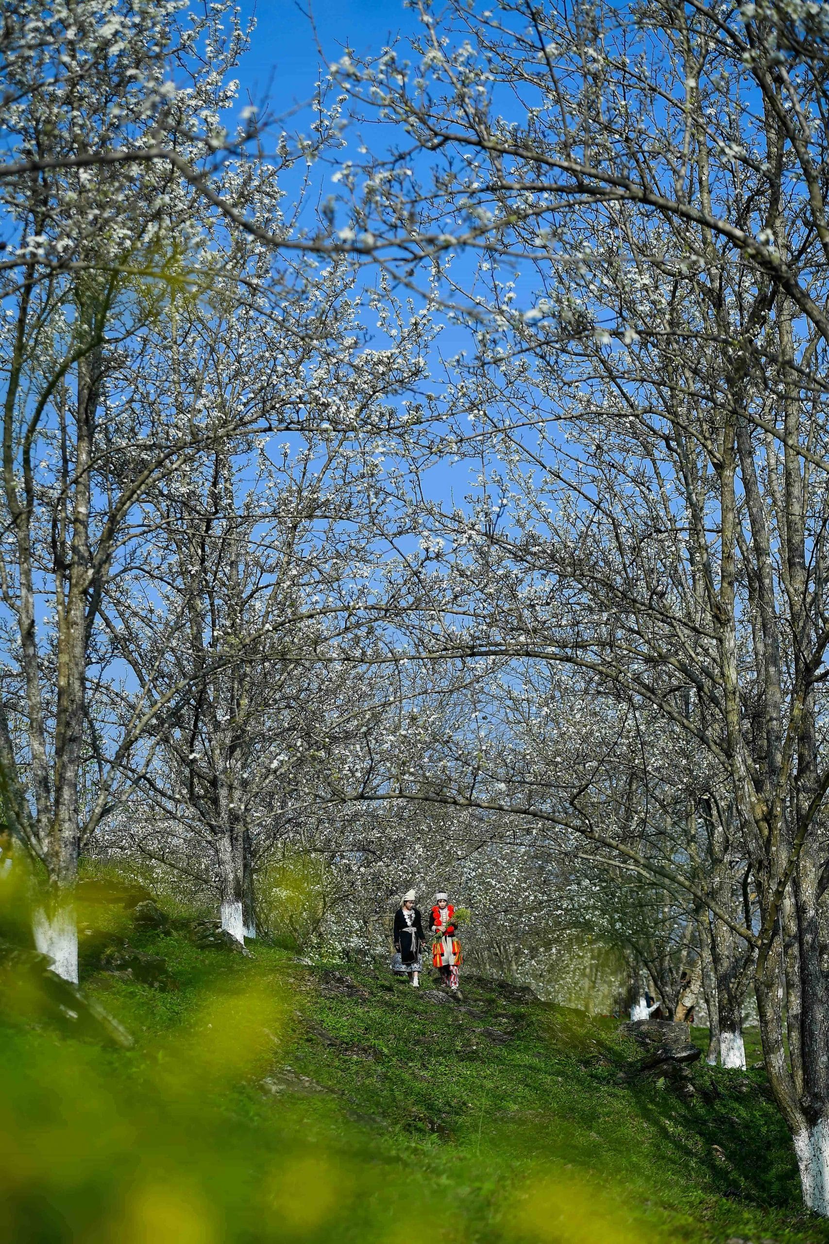 Trong hành trình ngắm hoa, du khách thường tìm đến những khu vực có hoa nở dày và cảnh quan mở rộng – nơi những lối đi nhỏ dẫn qua vườn lê, qua ruộng nương và các điểm nhìn xuống thung lũng. Ở Hồng Thái, một số thông được nhiều người nhắc tới trong mùa hoa như Khâu Tràng, Pác Khoang, Nà Mụ, Khuổi Phầy – mỗi nơi một sắc độ, có chỗ hoa nở thành vòm, có chỗ trải thành dải trắng dài theo đường sườn núi. Và điểm nhấn đặc biệt của Hồng Thái là con đường hoa lê dài nhất Việt Nam – nơi mùa nở rộ biến lối đi thành một dải trắng miên man, chỉ cần đi chậm là đã có cảm giác như đang bước trong một phân đoạn phim mùa xuân.
