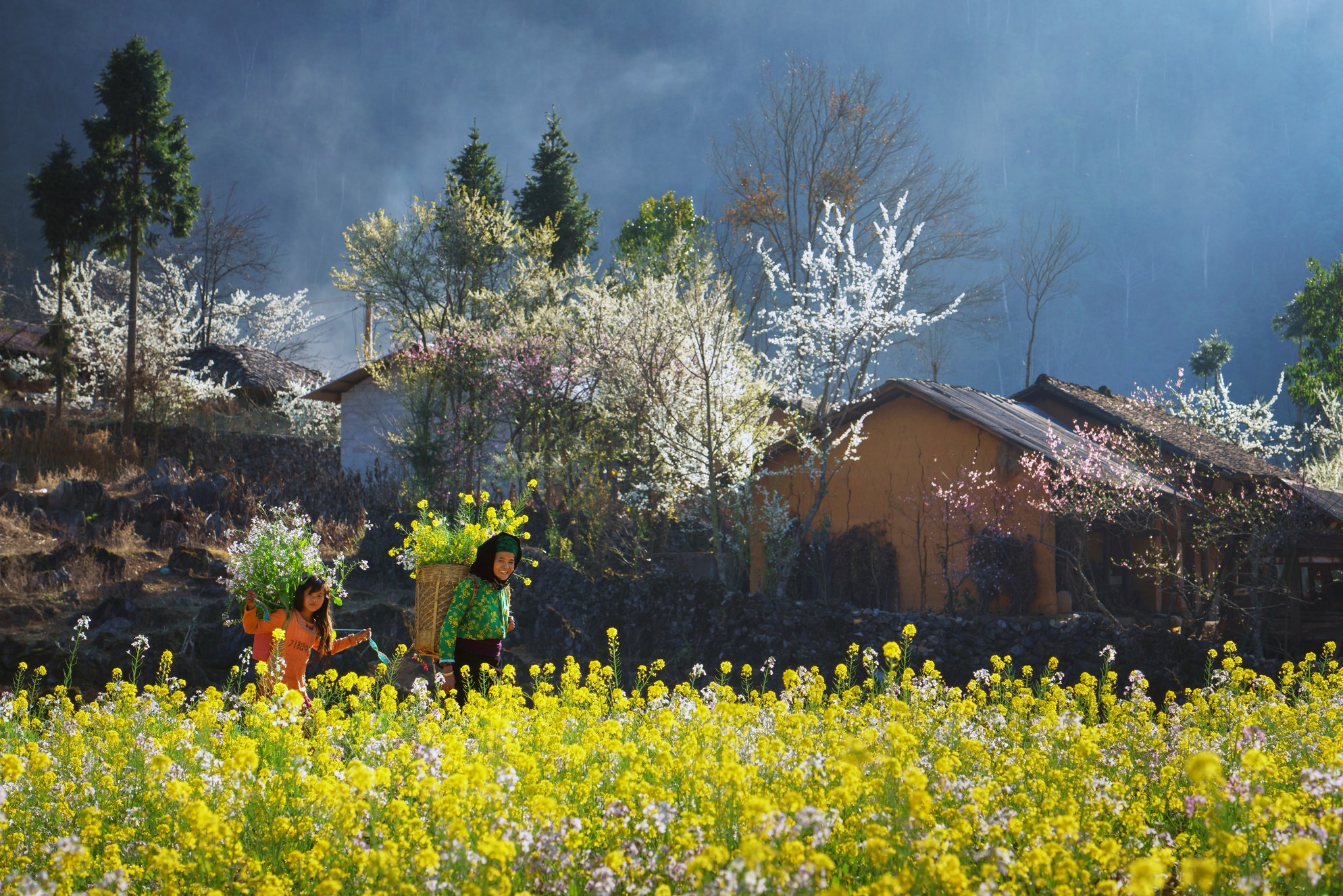 Đó là một Hà Giang bền vững dù không ít thăng trầm với những ngôi nhà bằng đất hàng trăm năm tuổi, những ngọn núi tai mèo mà hàng triệu cơn gió táp cũng chẳng thể bào mòn. Rong ruổi trên những cung đường ngoạn mục, khuất tầm mắt, đôi khi bạn sẽ cảm thấy mình lẫn vào những vách núi. Giống hệt những người bản địa, ngày ngày từ nhà lên nương, cắm cúi vun xới và đợi những cơn mưa hiếm hoi rót nước xuống cho ngô lúa mọc lên. Ở đây, bạn có thể bước chân vào bất kì một ngôi nhà nào, cất một câu chào bằng tiếng phổ thông và nghe chủ nhà trả lời bằng hai từ “chi pâu” (không biết). Chỉ cần hòa nhã, mọi cánh cửa luôn rộng mở với bạn. Gặp bữa cơm, chủ nhà sẽ mời bạn cùng ăn. Trùng dịp bản làng có lễ hội, bạn sẽ được mời uống rượu, nếm vài món bánh trái, nghe một vài làn điệu dân ca. Ồ, bạn nhất định nên nghe dân ca của người bản địa, vì biết đâu đó chính là sợi dây níu tâm hồn bạn ở lại cùng miền đất này.