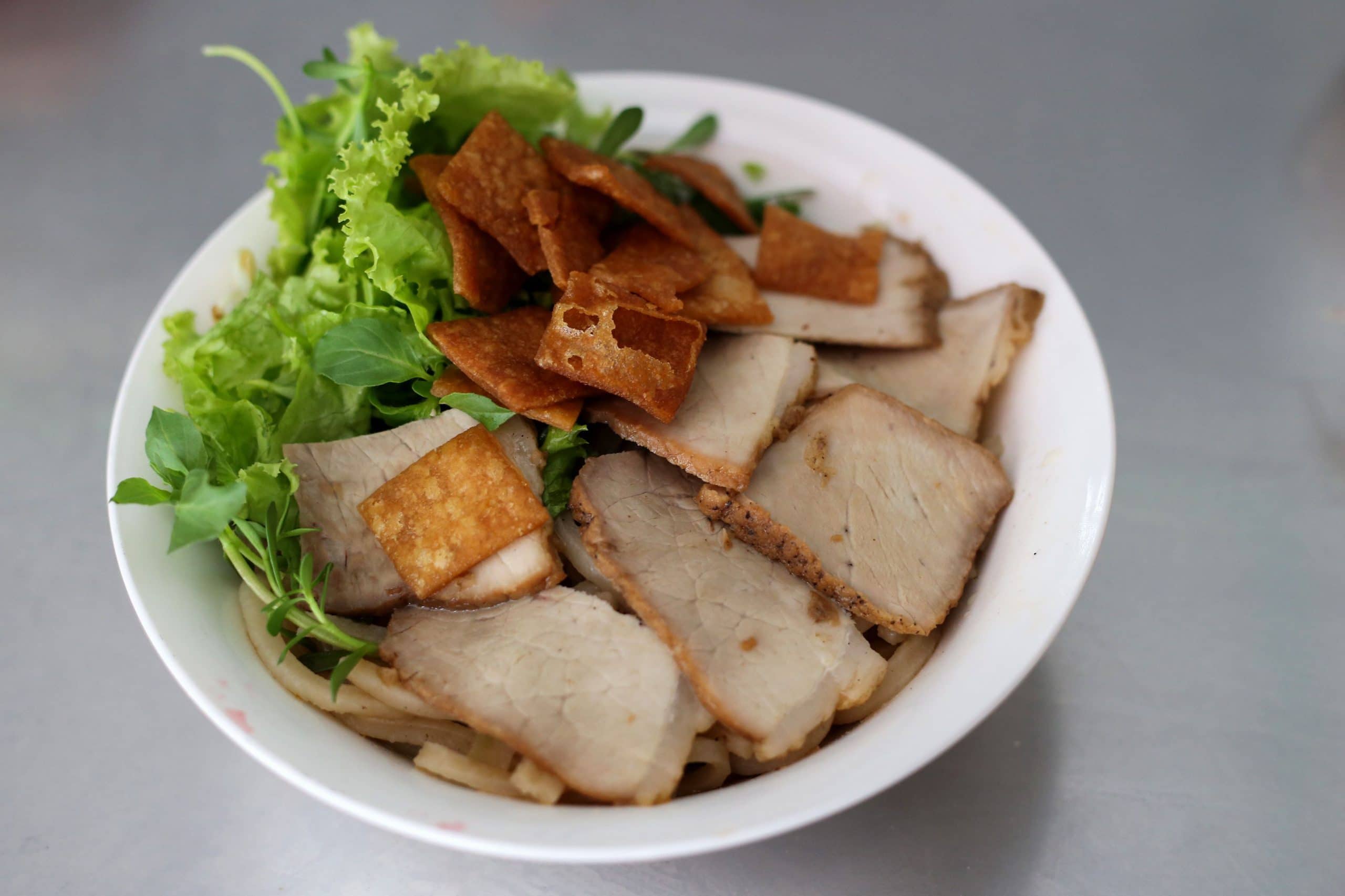 Món ăn này thường được bán ở Hội An, Đà Nẵng và Huế. Còn gì thú vị hơn khi bạn vừa ngồi ăn, vừa thưởng thức hương vị đặc biệt của món ăn, vừa “hít hà” không khí trầm mặc, cổ kính của mảnh đất miền Trung. Sợi cao lầu có màu vàng, cao lầu không ăn cùng nước dùng, thay vào là thịt xá xíu, nước thịt xá xíu và tóp mỡ. Để cho món ăn thêm hấp dẫn, nhiều nơi chủ quán còn làm đậu phộng rang giã nhỏ. Nước sốt khi làm xá xíu rưới lên, ai thích ăn đậm thì thêm chút nước mắm.