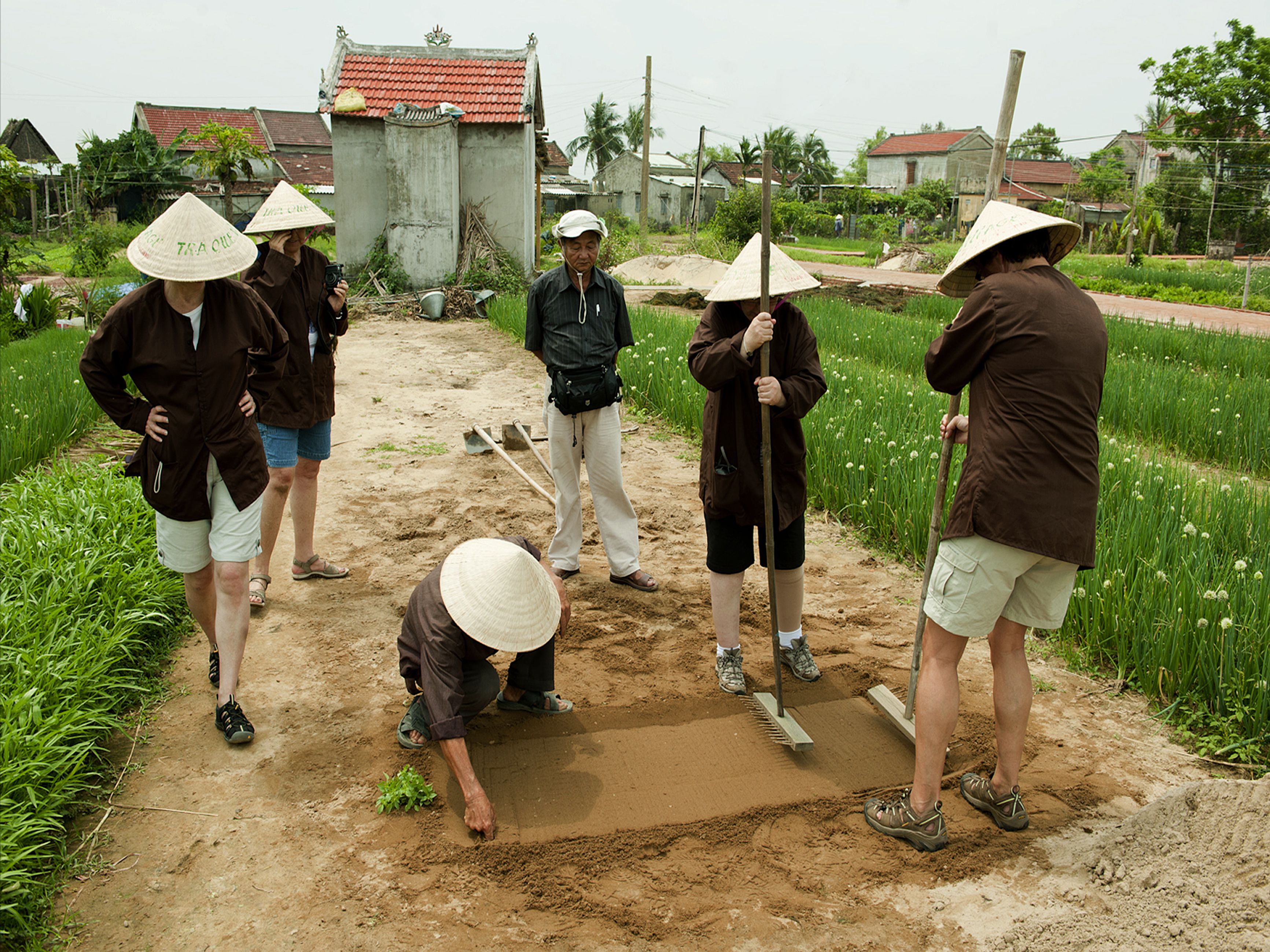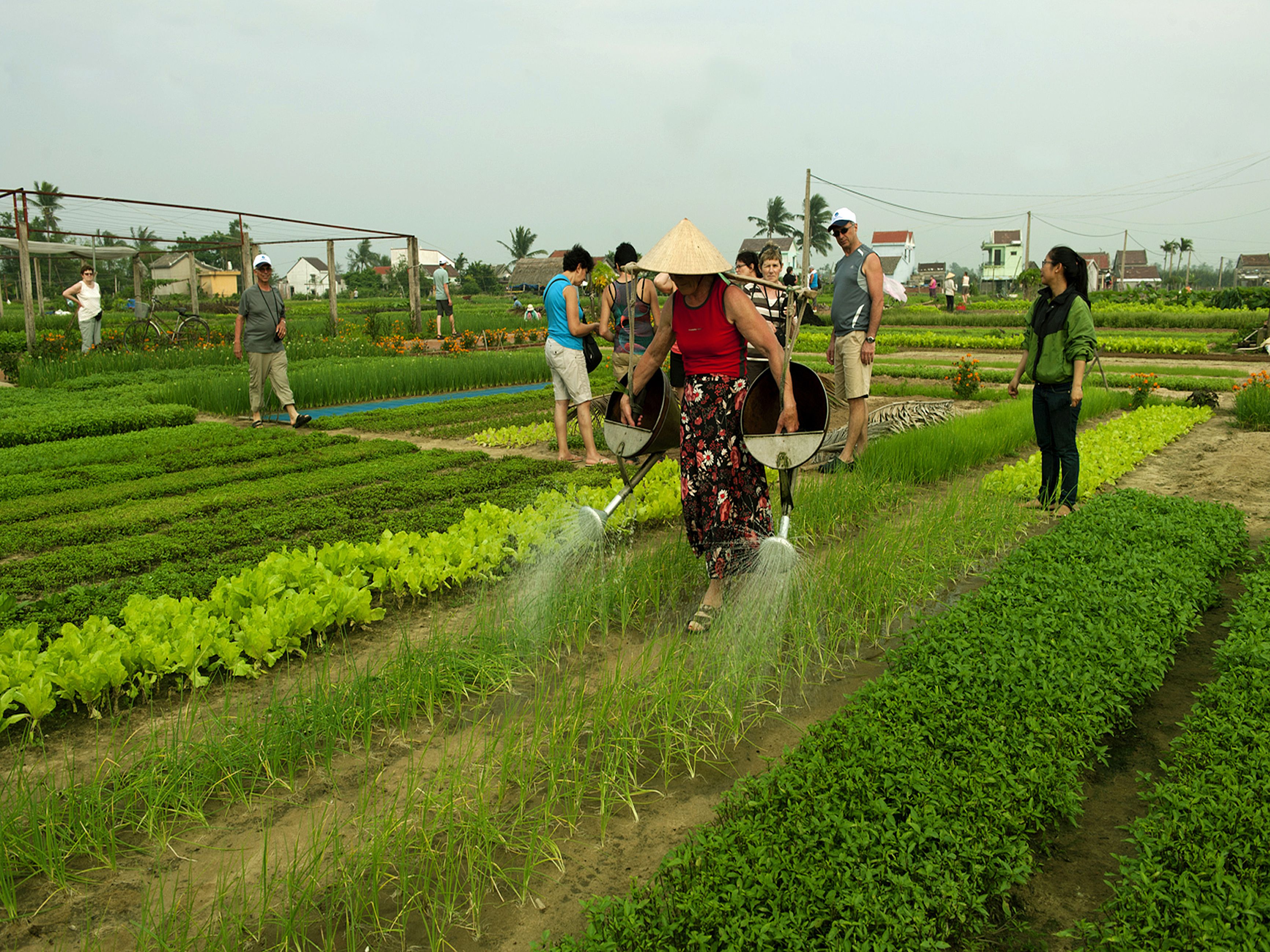 Người dân nơi đây đã rất sáng tạo khi mua những bộ áo quần nông dân, dép lê, nón lá làm nông phục cho khách, dựng những ngôi nhà dành cho du khách nghỉ ngơi. Sẽ là những trải nghiệm tuyệt vời cho du khách khi một ngày được làm “nông dân”. Du khách sẽ biết thế nào là cuốc đất, trồng cây, tưới nước, chăm bón cho rau. Cảm nhận đầu tiên của du khách đến đây là cách đón tiếp nồng hậu của những người nông dân. Mùa nào thức nấy, chủ nhà sẽ thết đãi du khách các loại rau nổi tiếng thơm ngon của làng qua các món như: nem cuốn, bánh xèo, canh hến… Đặc biệt, nếu du khách yêu cầu, chủ nhà sẵn lòng dạy nấu các món ăn truyền thống của Hội An, sau đó khách và chủ sẽ cùng nhau thưởng thức.