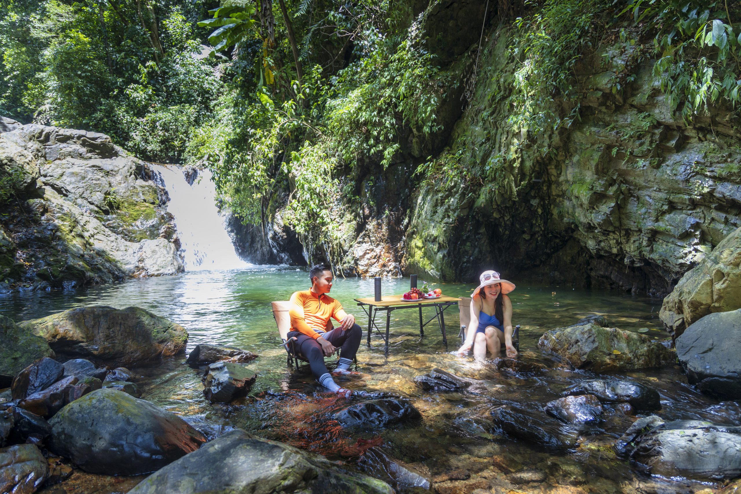 Nghỉ ngơi sau hành trình vượt thác, nhâm nhi ly trà nóng trong thứ cảm xúc chưa từng trải qua, chúng tôi lại vững bước trekking quãng đường ra khỏi rừng để di chuyển về bãi cắm trại nghỉ đêm.