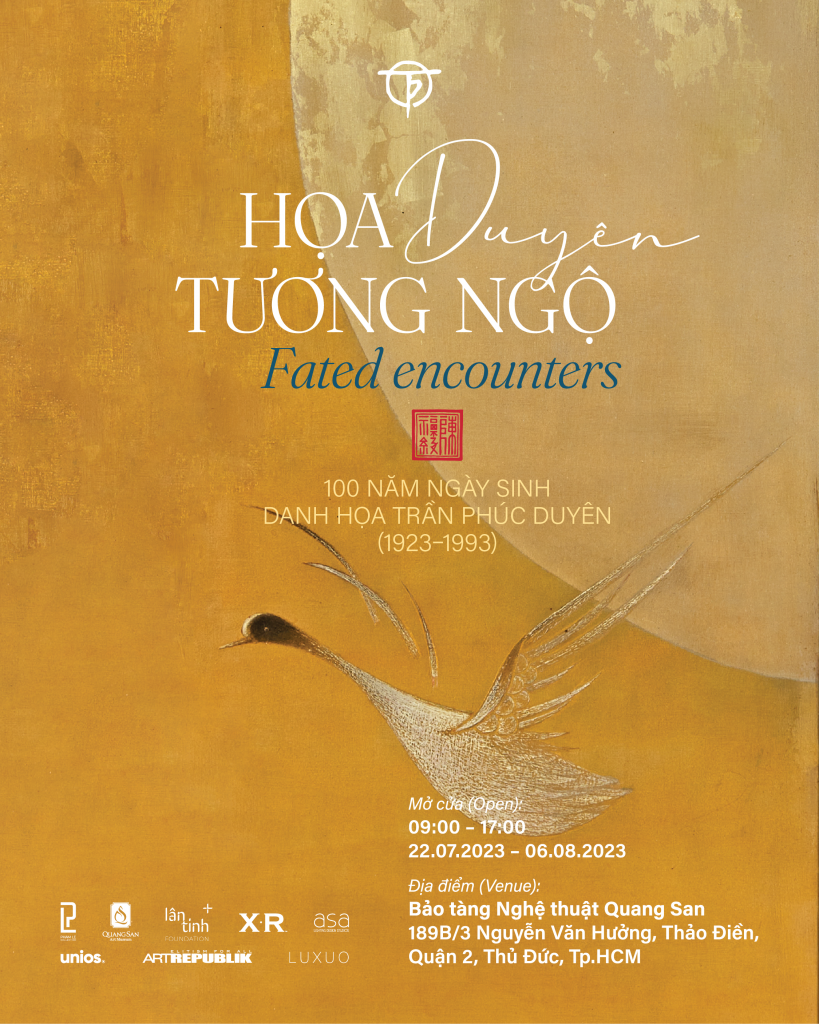 Triển lãm Họa Duyên Tương Ngộ: Trần Phúc Duyên mở cửa từ ngày 22/7 đến 6/8/2023 tại số 189B/3 Nguyễn Văn Hưởng, Thảo Điền, Quận 2, TP. Thủ Đức, TP. HCM.