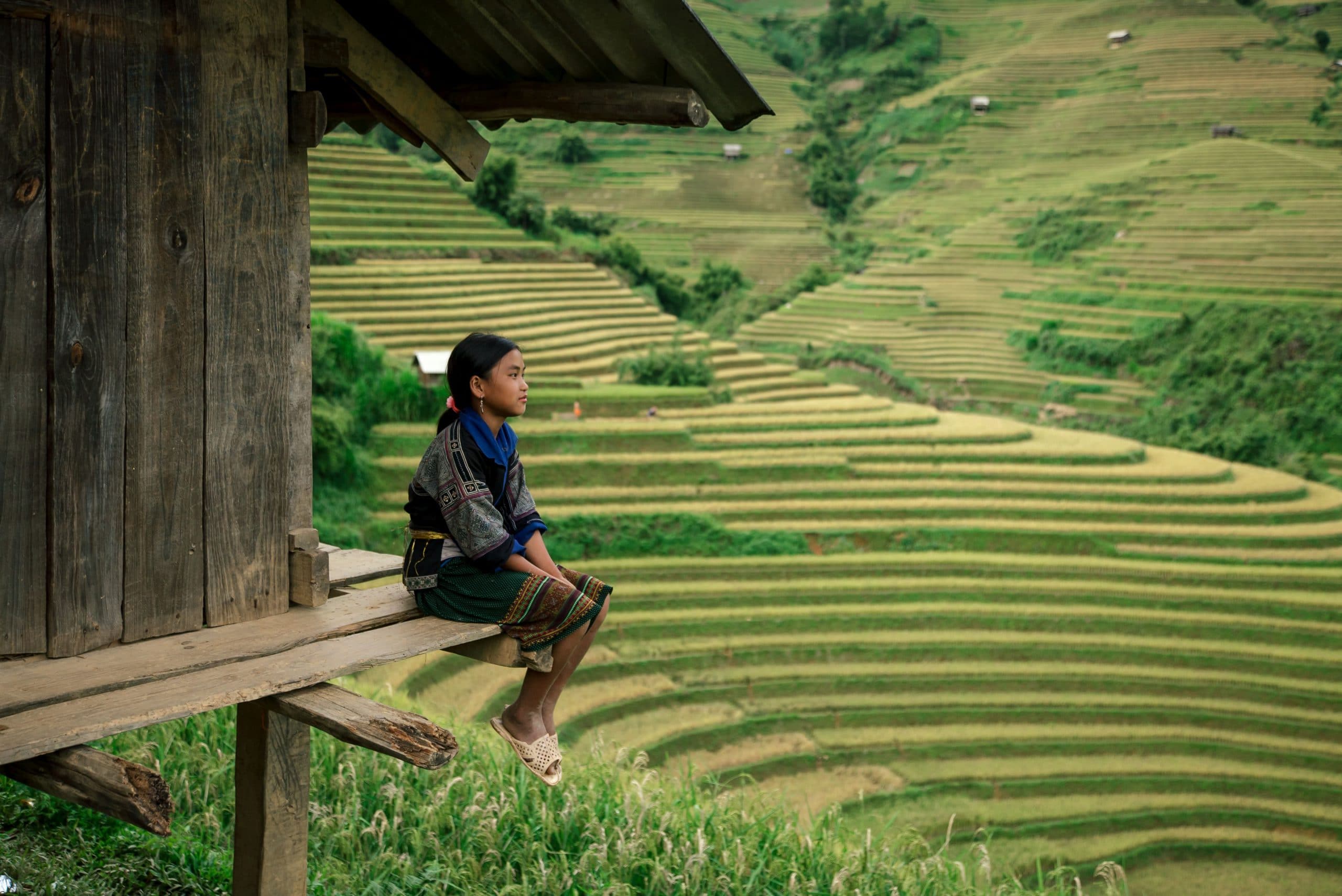 Chia tay Si Ma Cai, cả nhóm lại tiếp tục lang thang Hoàng Su Phì và chọn điểm nghỉ chân ở Bản Phùng trong cái nắng chào đón rực rỡ nhất của ngày. Cũng là ruộng bậc thang và những nếp nhà gỗ nhưng chúng tôi lại thấy hoàn toàn mới mẻ khi lạc vào bức tranh Bản Phùng. Những đứa trẻ La Chí đang hái hoa dọc bờ đó, chúng bẽn lẽn và sống động, miệng tủm tỉm như những đóa cúc dại trên tay.