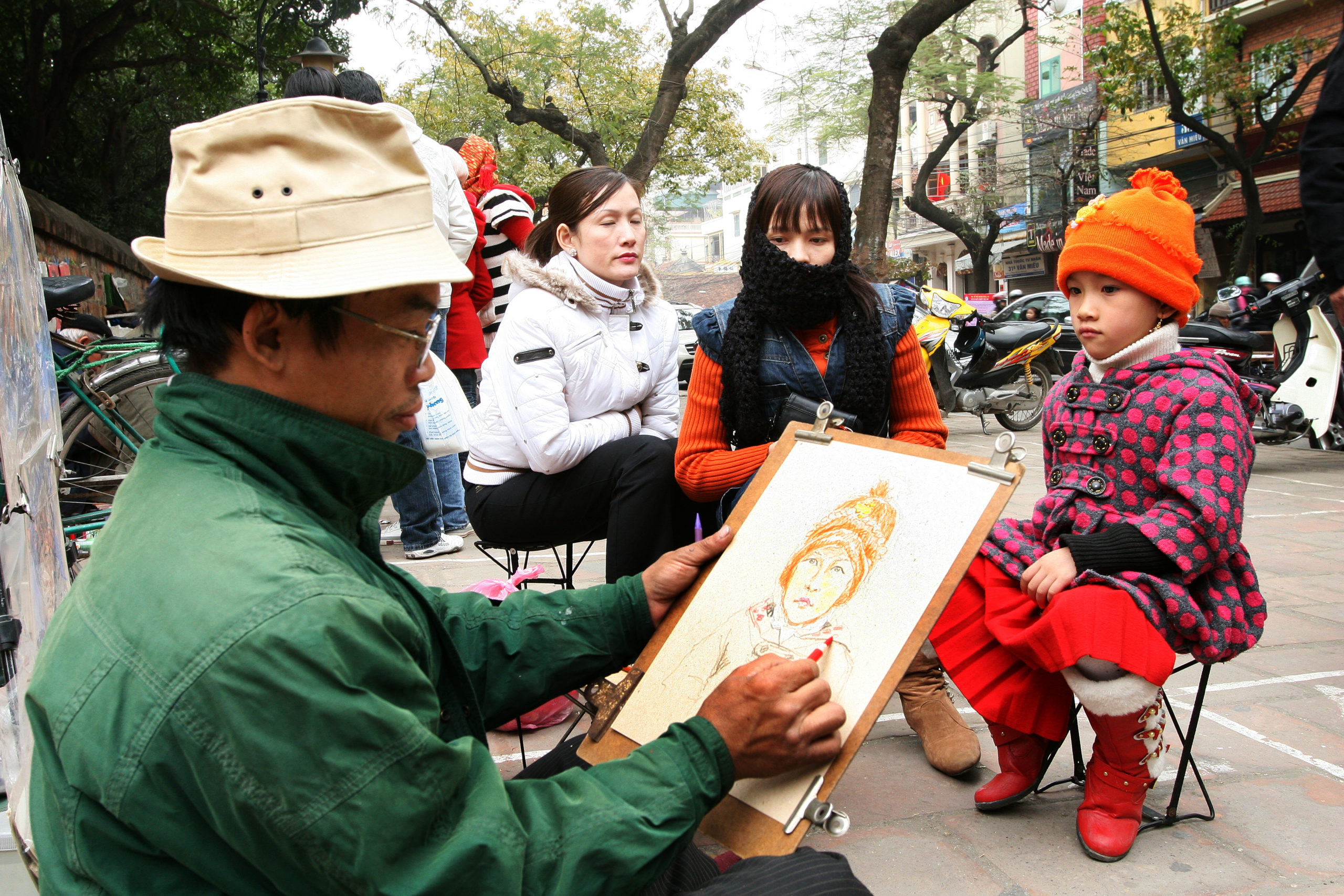 Bởi vậy mà các ông đồ trên phố chữ quanh Văn Miếu vào dịp này sẽ thỏa sức bộc lộ tài năng. Người am hiểu thơ Đường, Tống, điển tích xưa, biết nhiều chữ Hán cổ sẽ kiên nhẫn giải thích cho khách hàng về ý nghĩa uyên sâu của những chữ được viết. Song hành với đó là dòng thư pháp quốc ngữ, dùng tiếng Việt viết bay bướm những câu chúc lành, kiểu thư pháp này không được nhiều người Hà Nội chuộng lắm nhưng lại thịnh hành ở miền Nam và miền Trung, nhìn cũng khá đẹp nếu có bố cục hài hòa. Một số họa sĩ cũng lên phố trổ tài, họ vẽ ký họa, chân dung theo yêu cầu, thường chỉ là những bức chân dung khổ nhỏ được thực hiện vội vàng nhưng không thiếu đường nét tài hoa.