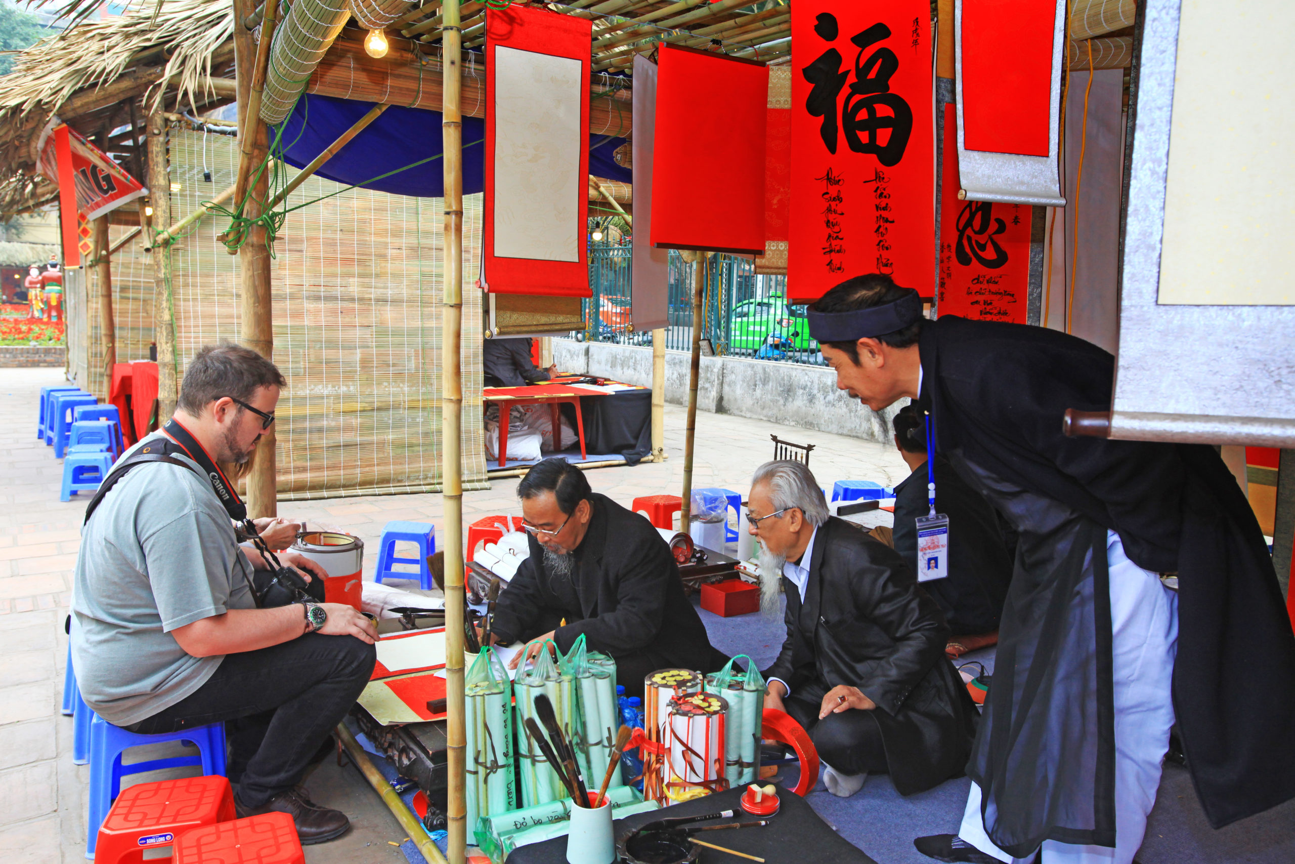 Cứ vào dịp này, người Hà Nội sẽ tìm về Văn Miếu hoặc vào Hoàng Thành Thăng Long, ở đó có phố ông đồ để “xin” những nét chữ hoặc nghiêm cẩn, hoặc phóng khoáng tung bay