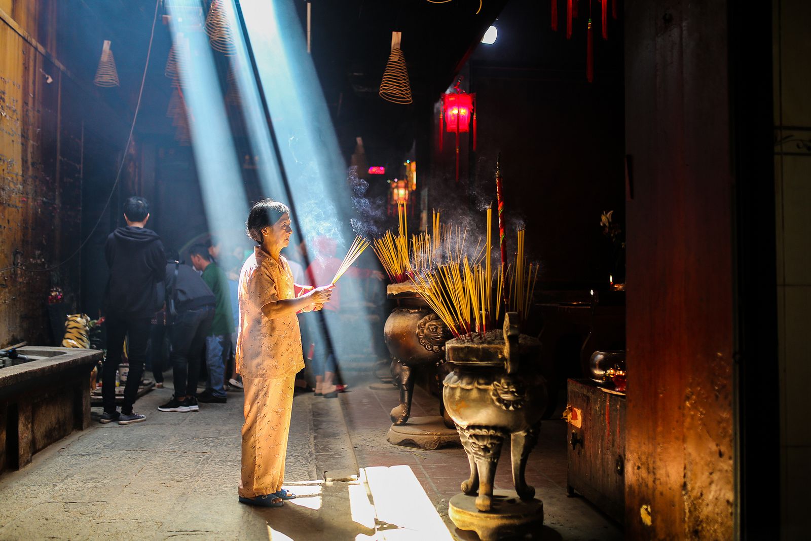 Người người đi chợ, tranh thủ sắm sửa các lễ vật cúng trả lễ để cảm ơn tổ tiên, thần linh đã phù hộ một năm bình an, thuận lợi chuyện làm ăn. Sạp nào cũng đông kín khách mua. Có sạp bán trái cây, nhang đèn, giấy tiền vàng mã phục vụ cúng kiếng. Có sạp bán các loại bánh cúng trả lễ cuối năm như bánh bao, bánh tổ, bánh trái lựu, bánh trái đào. Có sạp chuyên bán các món mặn như gà luộc, heo quay, vịt quay. Có sạp chuyên bán xôi chè, xôi gấc, xôi lá dứa, lá cẩm rắc mè rang trên mặt, những thau inox đựng vô số những viên chè trôi nước tròn trịa, đủ màu sắc và cả những viên chè ỷ nho nhỏ, dễ thương.