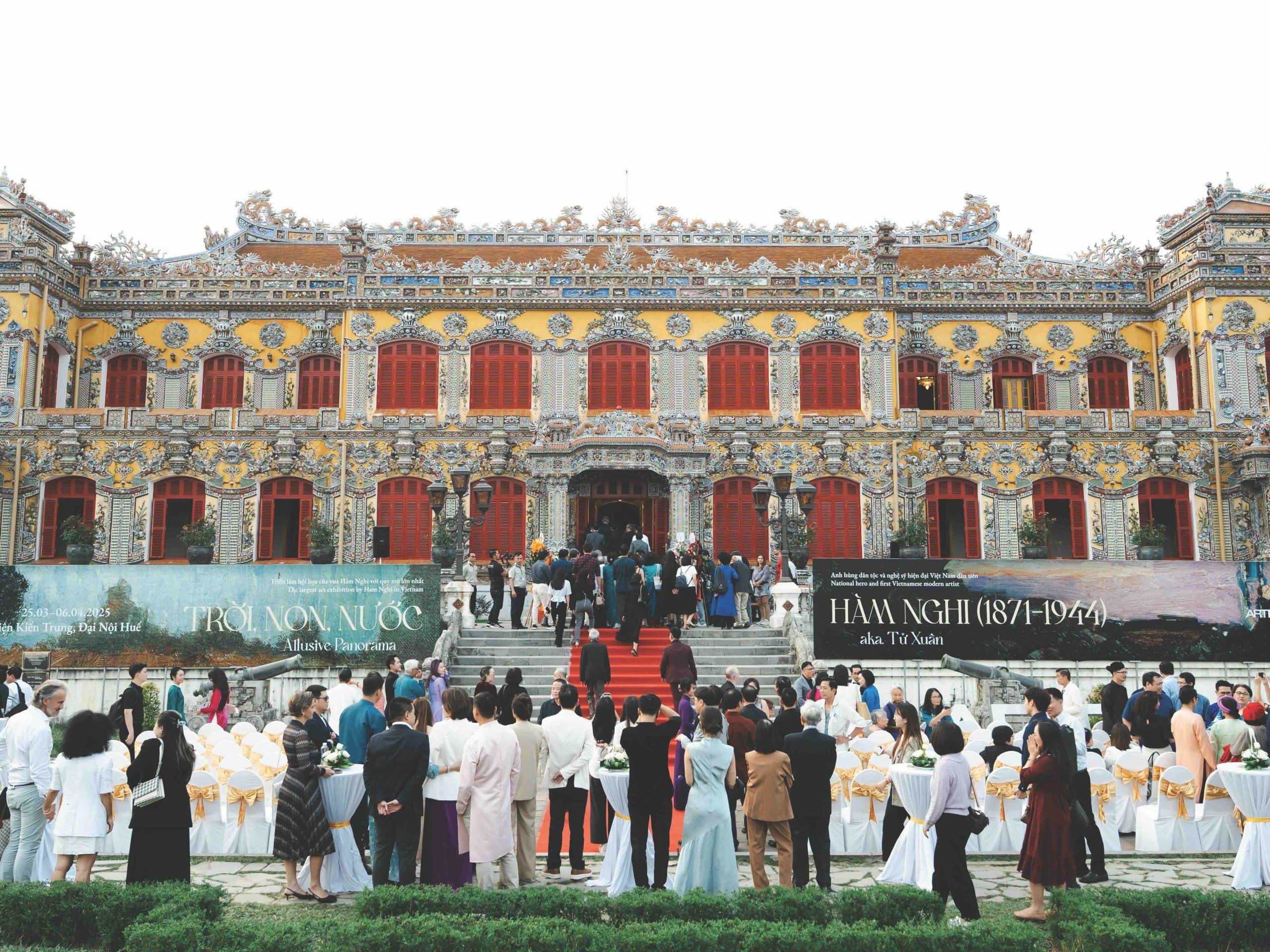 Đến triển lãm Trời, Non, Nước – Allusive Panorama, tôi có dịp được trò chuyện cùng giám tuyển Ace Lê về triển lãm hồi cố quy mô nhất dành cho hội họa của Cựu hoàng Hàm Nghi tại Việt Nam. 21 tác phẩm từ 10 bộ sưu tập tư nhân đã được trưng bày tại Điện Kiến Trung (Huế), mang đến cho giới mộ điệu và công chúng cơ hội hiểu thêm về vai trò của Ngài như một nghệ sĩ, cũng như những tâm tình sâu sắc Ngài dành cho cố hương.