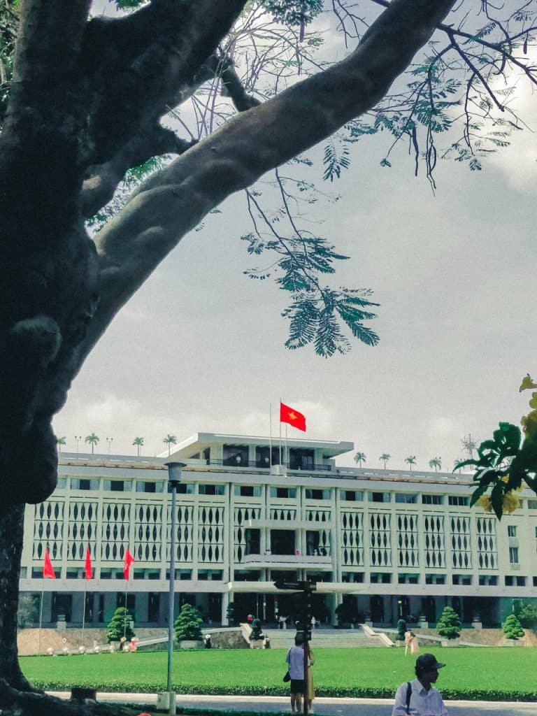Khi nắng chiều dần thu về trên nóc những tòa cao ốc của thành phố, chúng tôi bước tới đích cuối cùng của hành trình nhiều cảm xúc hôm nay – Dinh Độc Lập. Khoảnh khắc nhìn thấy cánh cổng sắt, trong đầu tôi lập tức vang lên giọng đọc vào buổi trưa tháng Tư năm ấy “Mời các bạn nghe tin chiến thắng chúng tôi mới nhận được…” – thời khắc lịch sử khép lại một chương đau thương và mở ra một trang mới cho dân tộc.
