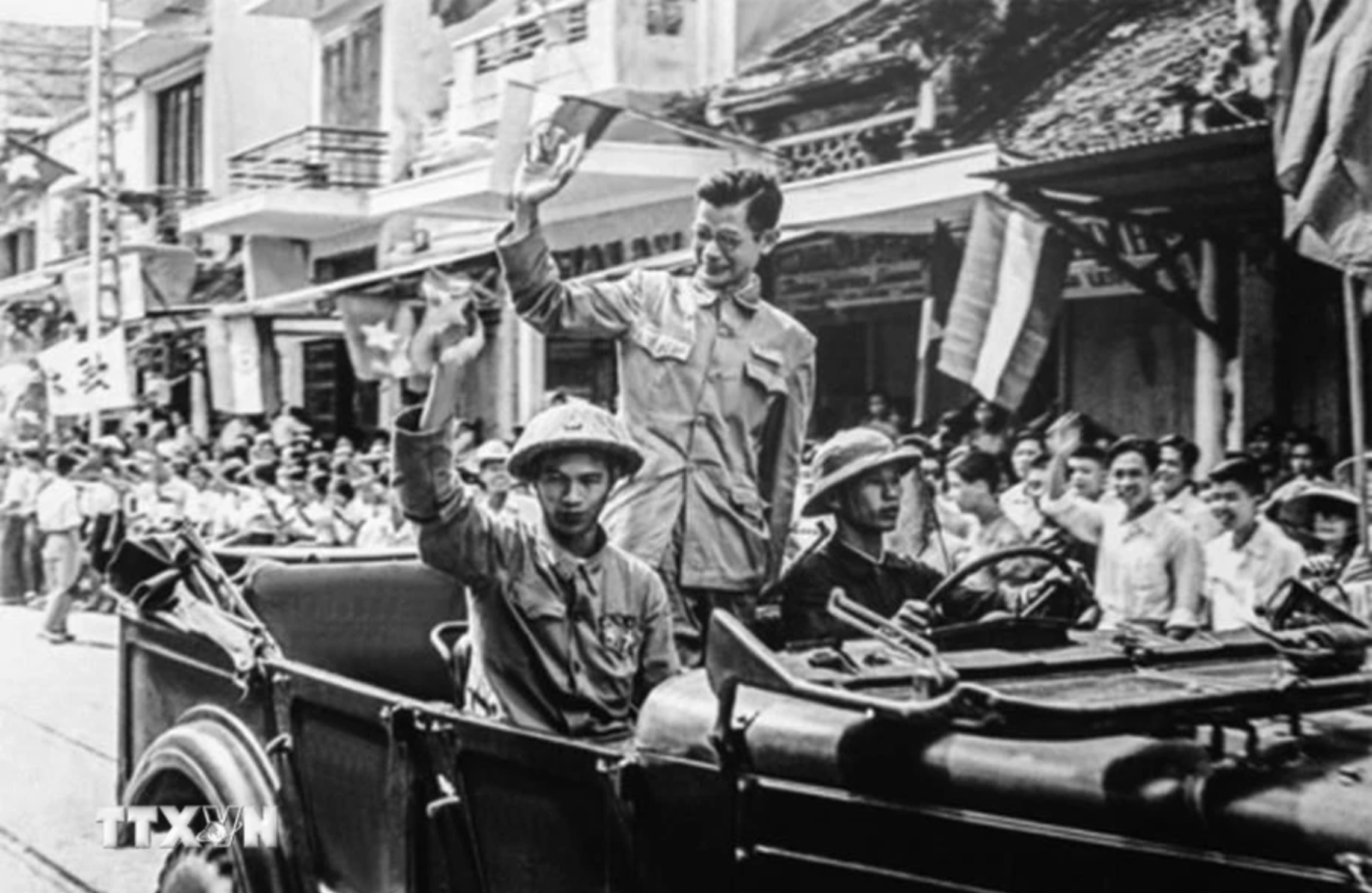 Bác sĩ Trần Duy Hưng cùng Đoàn quân về tiếp quản Thủ đô. (Ảnh: TTXVN)