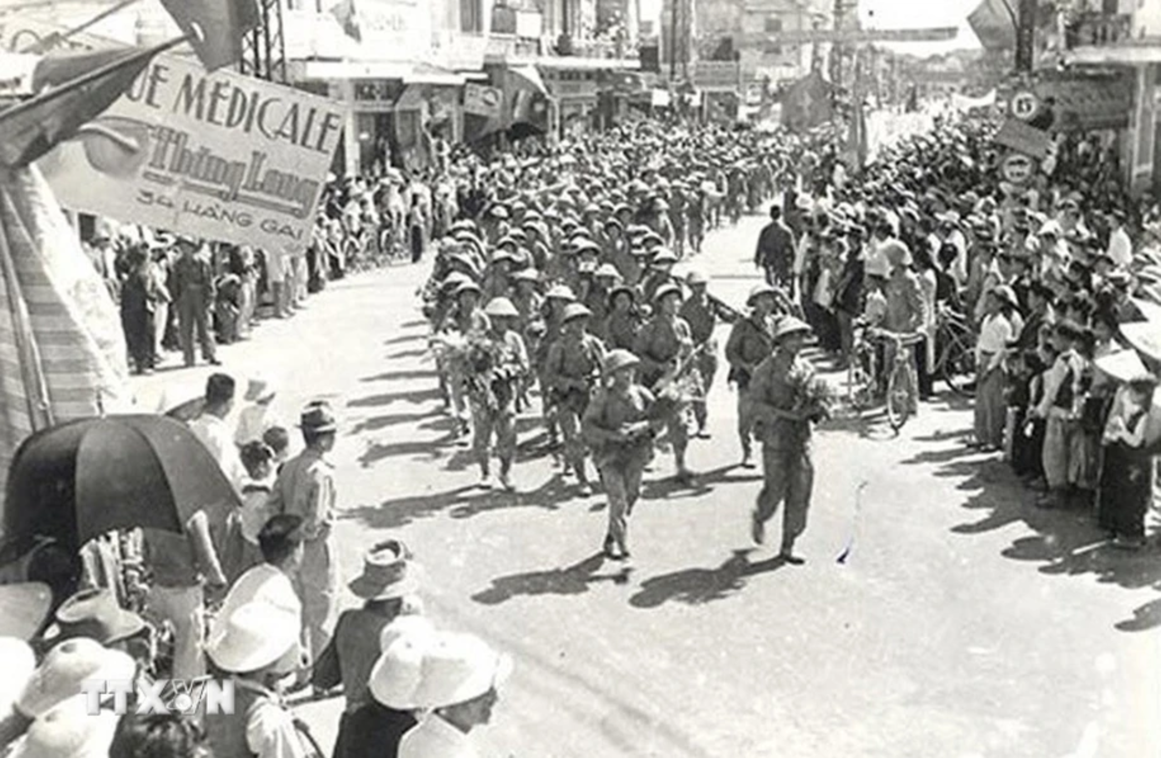 Đoàn quân về tiếp quản Thủ đô. (Ảnh: TTXVN)