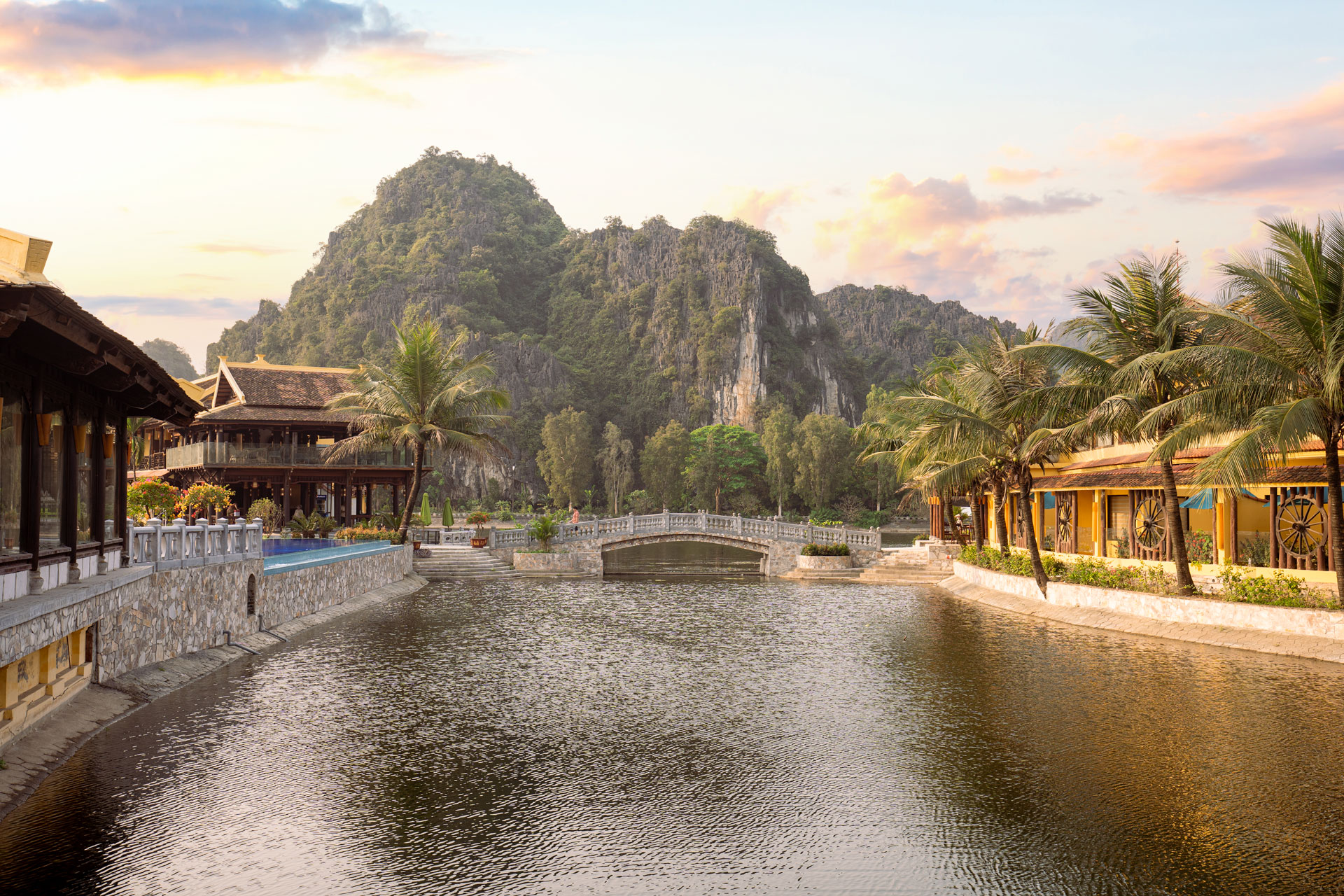 Đặc biệt hơn nữa, trải nghiệm nghỉ dưỡng tại Emeralda Resort Tam Cốc ngoài thưởng lãm nét đẹp văn hóa, kiến trúc là những khoảnh khắc bình yên đắm chìm trong thiên nhiên hùng vĩ của di sản thiên nhiên Tam Cốc – Bích Động nơi những dãy núi đá vôi trùng điệp được ôm trọn bởi dòng sông Ngô Đông xanh mướt.
