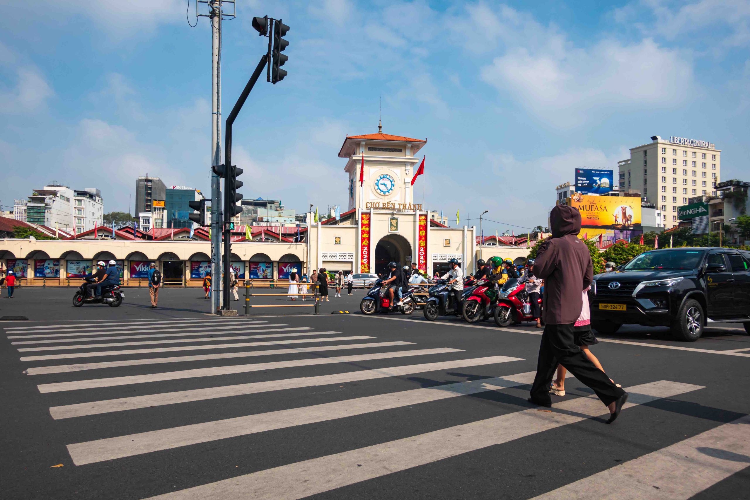 Passing the Independence Palace, I walked slowly, reminiscing about the history that still lingers here, soaked into every brick and blade of grass within the compound. Turning left, I found myself on Nguyen Du Street, its rows of green tamarind trees immortalized in modern literature. From the Music Conservatory of Ho Chi Minh City, I strolled leisurely onward before turning onto Nguyen Trung Truc Street and arriving at Ben Thanh Market. Bustling and lively, regardless of the time of day or season, the market offers the finest produce from Saigon – and all over the country. It is both a large-scale retail market and a famous culinary destination, attracting many visitors.
