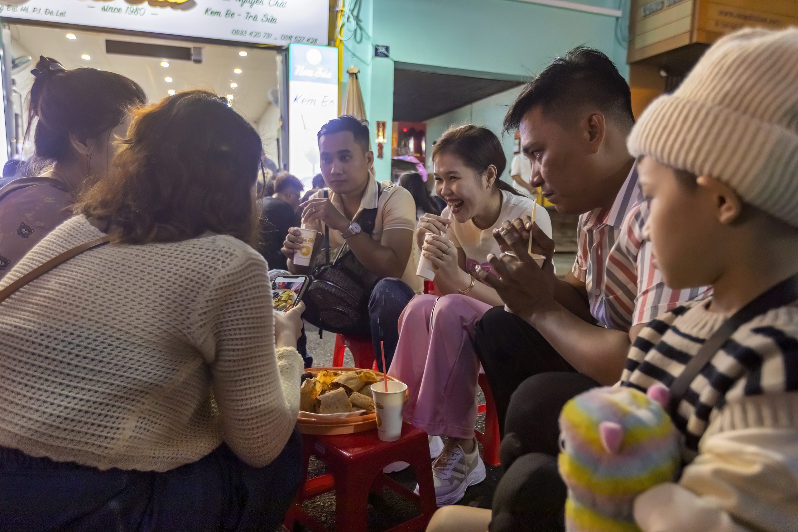 When in Dalat, I rarely plan ahead. I book a place online, grab a ride or a flight, and just like that I’m peacefully drinking my coffee at Thuy Ta while admiring the views of Xuan Huong Lake. After a 15-minute walk, I arrive in the Hoa Binh District with its streets lined with coffee shops and snack stands. In the evenings, when the weather turns chilly, both locals and tourists cheerfully find their way to enjoy some soy milk and mung bean milk served with cream puffs that boast a sweet taste and silky texture.