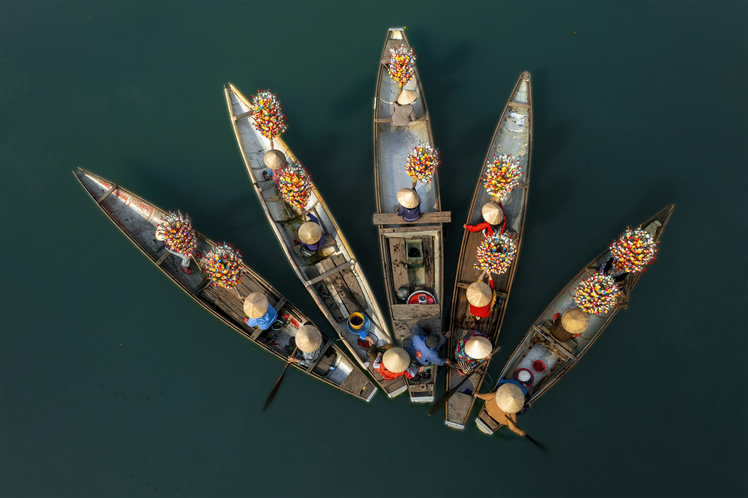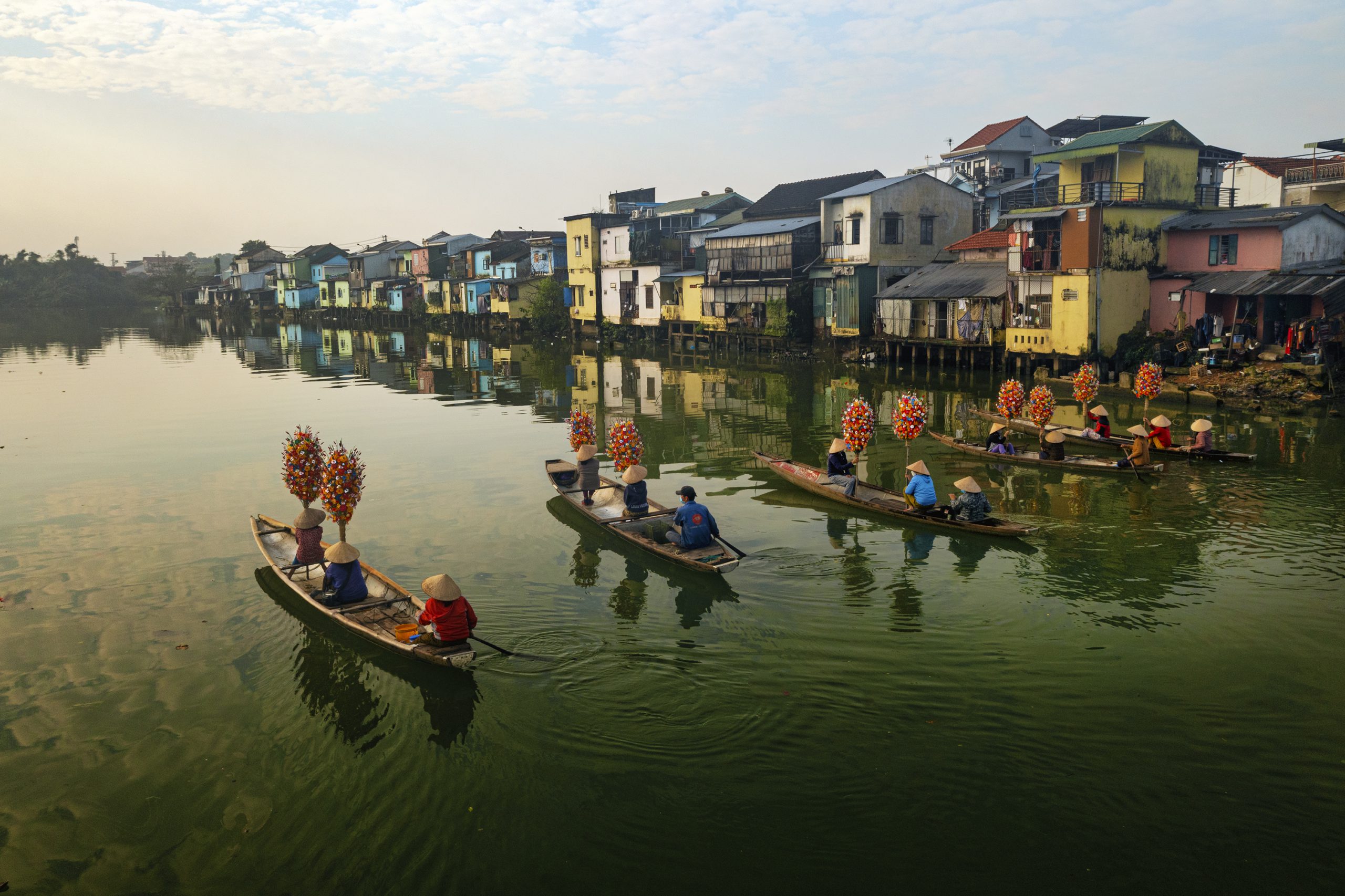 In the lead-up to Tet, the bright colors of paper flowers help to chase away the gloom and chill of late winter. During this time, Hue’s Huong River seems to be painted in vibrant colors as flower-laden boats sail off in all directions from this downstream village.