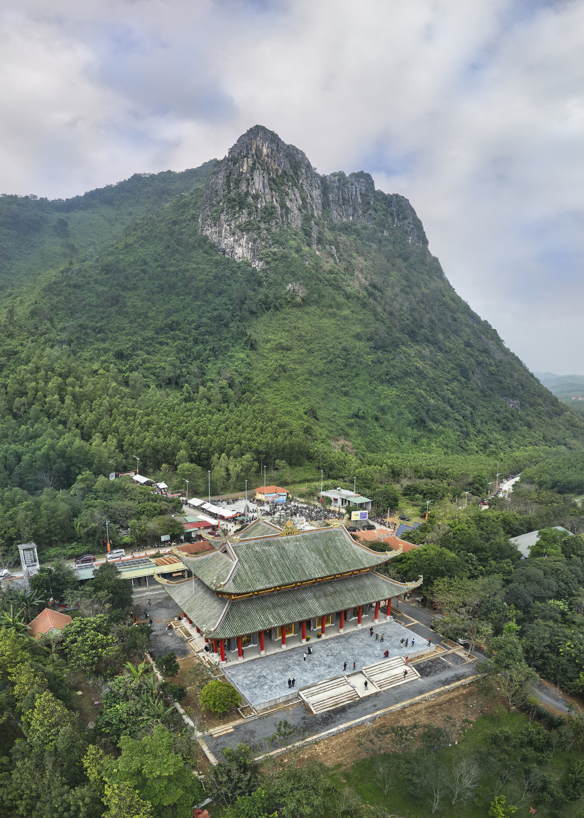 The journey begins before sunrise. After about 30 minutes driving from Dong Hoi city along the mystical Ho Chi Minh Road in the early morning mist, the majestic temple gradually comes into view. From the temple gate, I follow a red brick path flanked by towering trees. On early mornings at the start of the year, the temple is crowded with locals and tourists. Amidst the solemn atmosphere, with the gentle fragrance of incense, flickering candlelight, and the sound of the temple bell, it seems everyone becomes respectful and mindful, walking softly and speaking quietly.