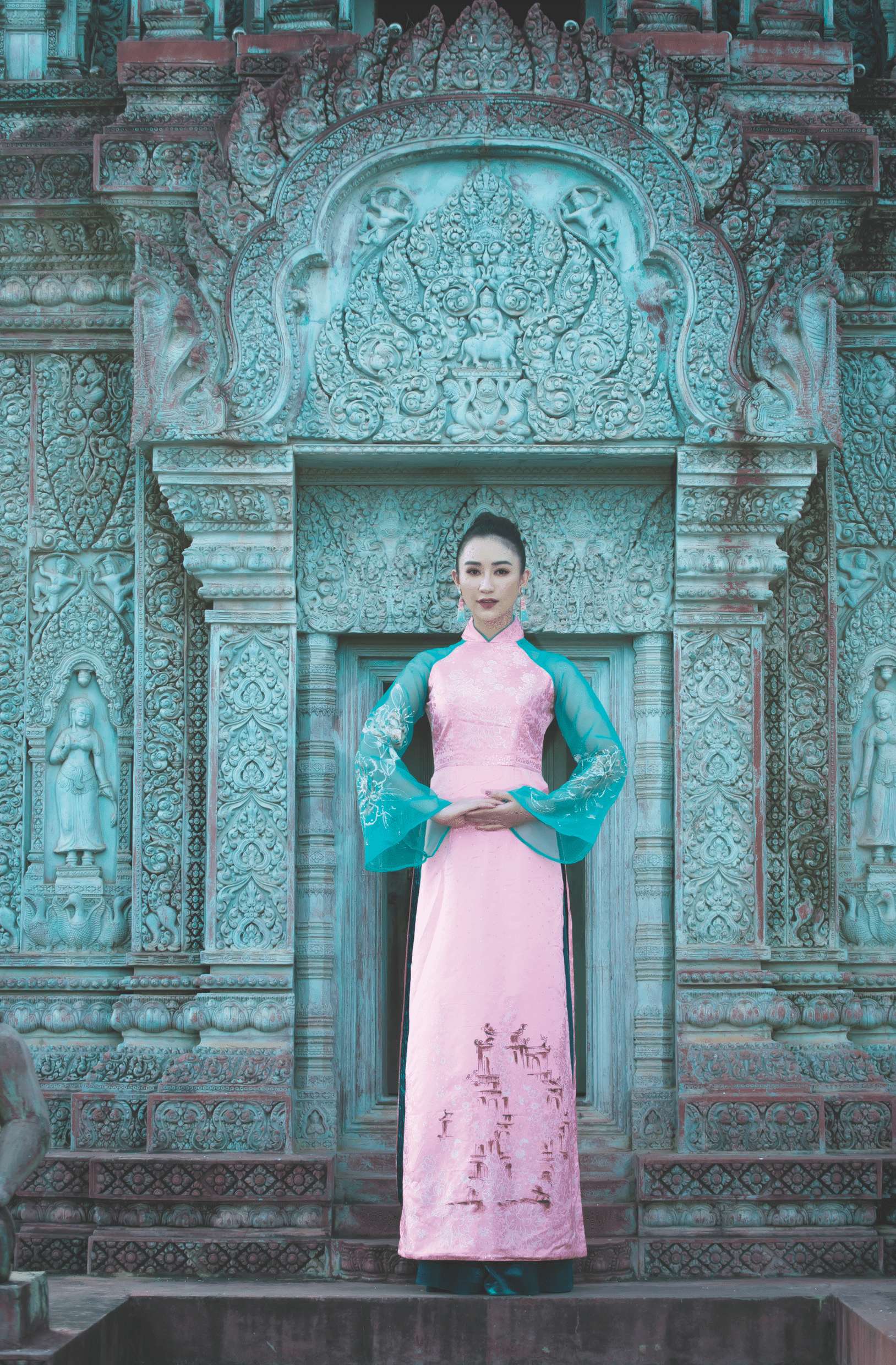 His passion for the traditional costume of Vietnam compelled him to pause his career as a makeup artist and take up designing courses to pursue fashion. After relentless efforts, his journey brought him to the United Kingdom in 2015 to present his collection of Hue royal culture at the Vietnam Discovery program. Just one year after this accomplishment, Tran Thien Khanh became the only designer invited to the Áo Dài Festival in Hue with his collection “Mystique Orient,” inspired by lotus petals. At this time, Tran Thien Khanh also began his collaboration with Heritage Fashion with elaborate photoshoots at heritage sites on the Vietnam Airlines network such as Hue and Siem Reap.