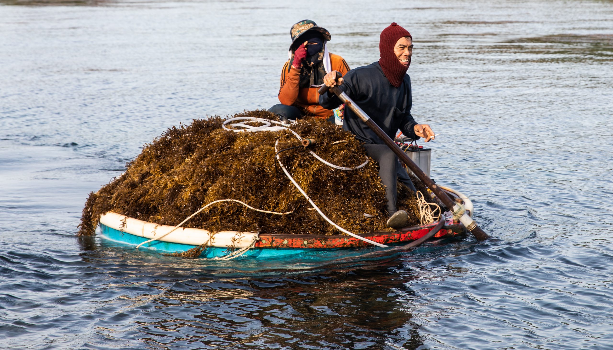 Sargassum is a brown seaweed that typically grows around coral reefs at depths of three to six meters. The seaweed is ready to harvest once large patches have grown enough to float on the ocean’s surface. Sargassum is both a nutritious food for coastal people and a precious, high-value medicine that can increase villagers’ income. Large-scale harvesting requires bigger vessels and oxygen compressors, while small-scale operations only require coracles or handmade rafts from which to dive in coastal waters.
