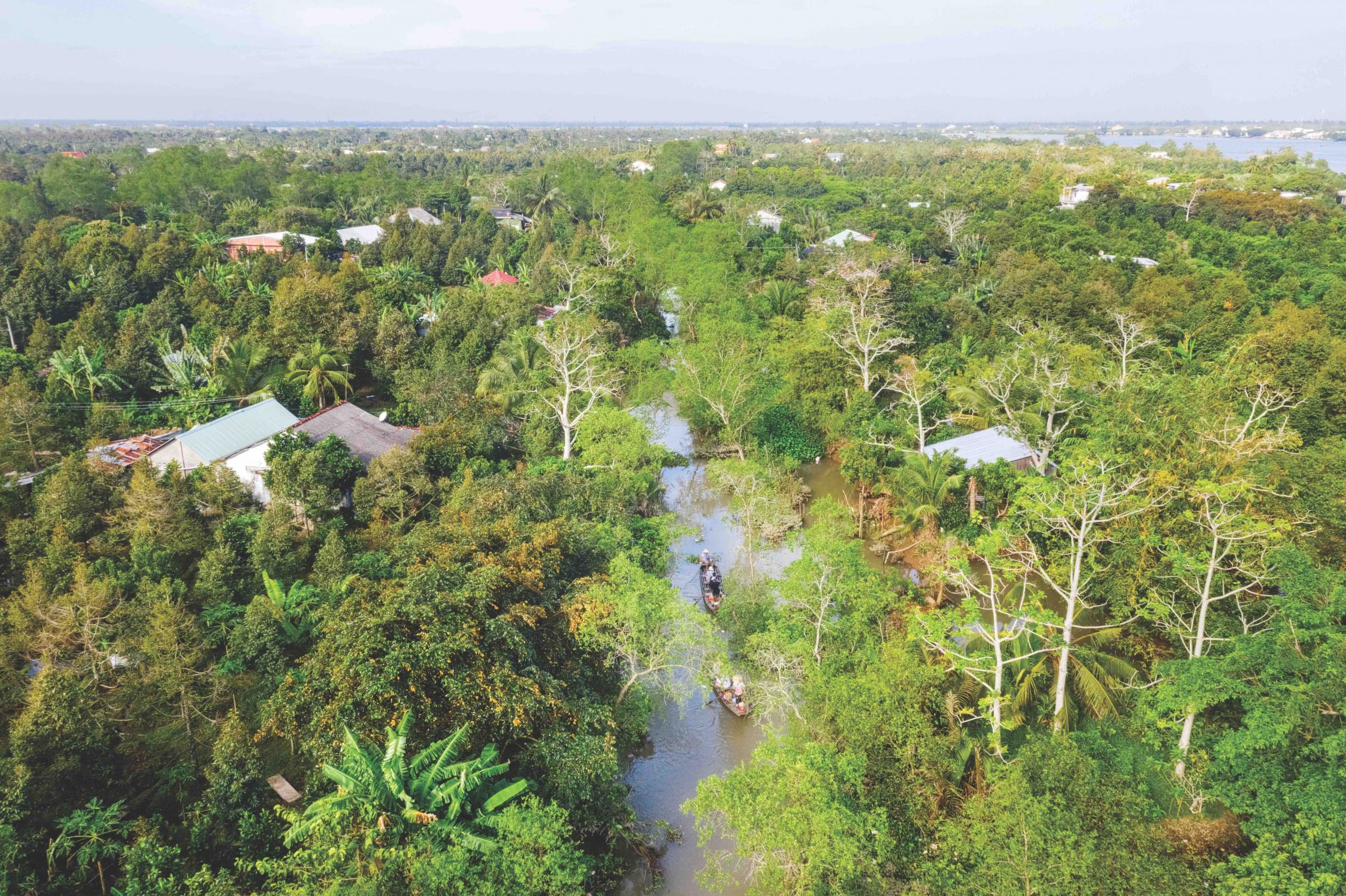 Tien River becomes the left bank tributary of the Mekong River, with the right bank being the Hau River. We explored the most significant part of this left-bank Mekong tributary, the section where the Tien River divides into three branches: the Co Chien River, Ham Luong River (in Vinh Long and Ben Tre), and My Tho River (in Tien Giang).