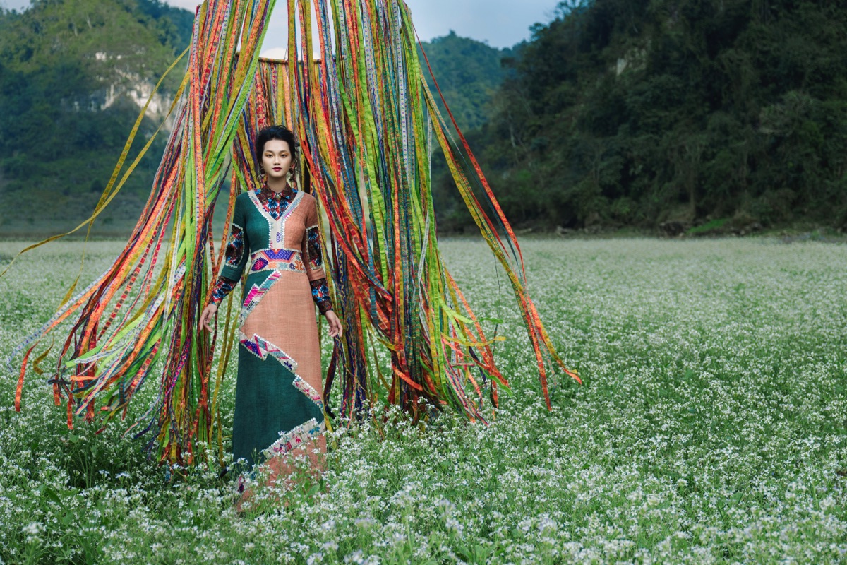 The Hue Traditional Crafts Festival 2015 saw the exhibition of the first fashion collection made from zeng fabric. In 2016, as part of the launch of the Vietnam House project in France, Minh Hanh presented her Breathing Through the Mountain Forests of Vietnam collection using fabric from the Ta Oi and H’mong (Ha Giang Province) peoples. For this occasion, she also invited ethnic artisans to France to demonstrate their talents on traditional looms.
