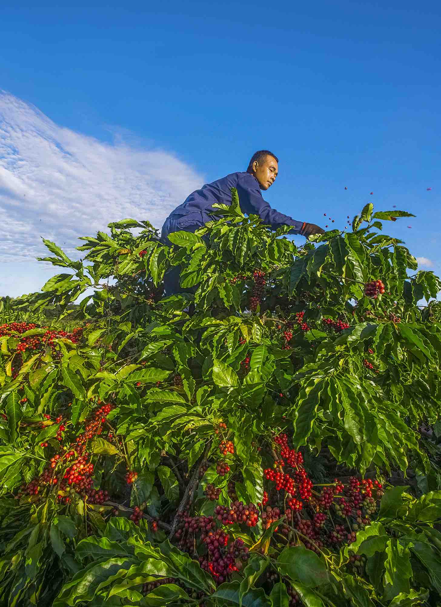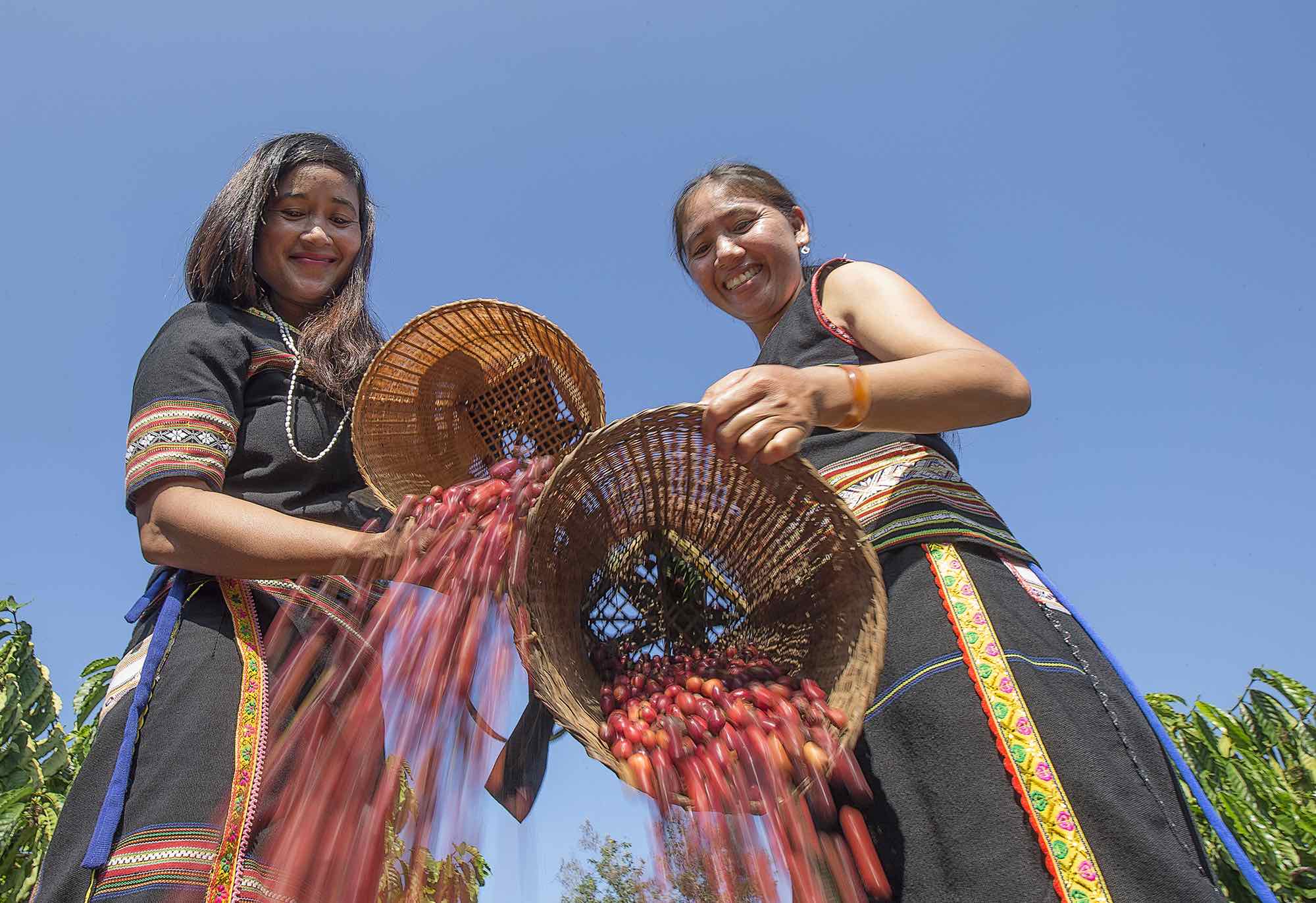Farmers in the Central Highlands typically mark agricultural milestones according to the lunar calendar. After harvesting around mid-October, coffee trees are pruned and continuously watered until the arrival of the rains, usually in the third lunar month. Just before the Lunar New Year, the coffee flowers bloom for the first time. From the full moon to the end of the first lunar month is the second flowering period. Although there are fewer flowers, the fruit-setting rate is exceptionally high. Around the end of the second lunar month, the coffee trees bloom for the final time. When the rains grow heavy, coffee growers need only weed and apply regular fertilizer, providing the trees with additional nutrients to nurture the developing cherries. In August, the coffee cherries begin to ripen, and by October, the plantations are adorned with ripe red berries and bustling with the cheerful chatter of harvesters.