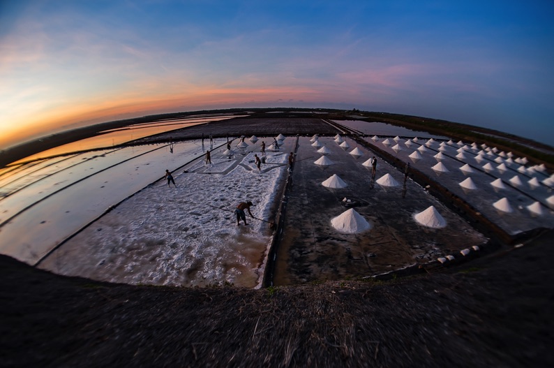 As the sun rose, the farmers began to pick up the pace. Neatly stacked piles of salt lay radiating under the early sun, like sparkling diamonds. The higher the heat, the quicker the salt dries. The field resembled a giant mirror glinting in the light while the shadows cast by the working farmers created an idyllic and lively landscape straight out of an oil painting. Thoroughly captivated, I snapped an endless number of photos to capture every inch of the scene. To me, humans reveal their glorious beauty when they work.