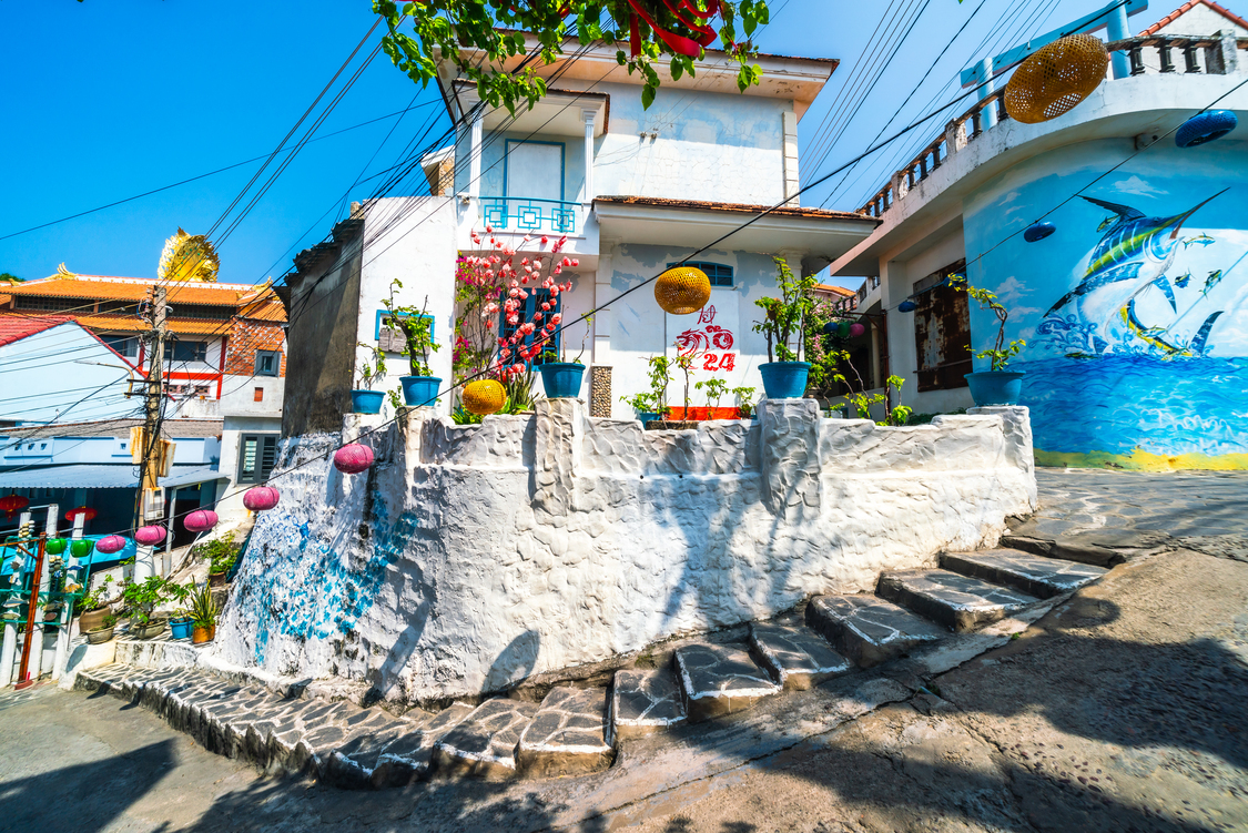 Explore the fishing village of Nhon Ly, known for its vibrant murals and charming coastal lifestyle.